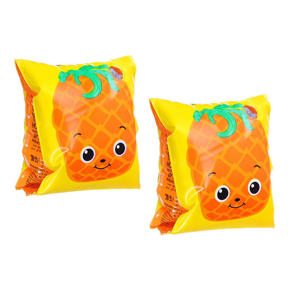 Нарукавники для плавания с изображением фруктов отлично подойдут и мальчикам и девочкам. Изготовлены из качественных материалов. Надежно удерживают ребенка на поверхности воды. Надувные нарукавники помогут начинающему пловцу удержаться на воде и научиться плавать. Сделаны из высококачественного ламинированного низкофталатного ПВХ с безопасными клапанами. Соответствуют всем европейским стандартам безопасности. Каждый нарукавник состоит из двух надувных камер с возвратными клапанами. Прекрасно подходят для обучения детей плаванию под присмотром взрослых.