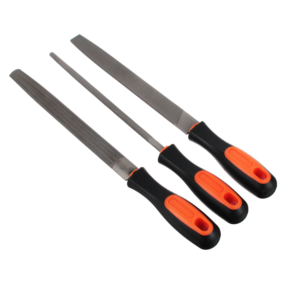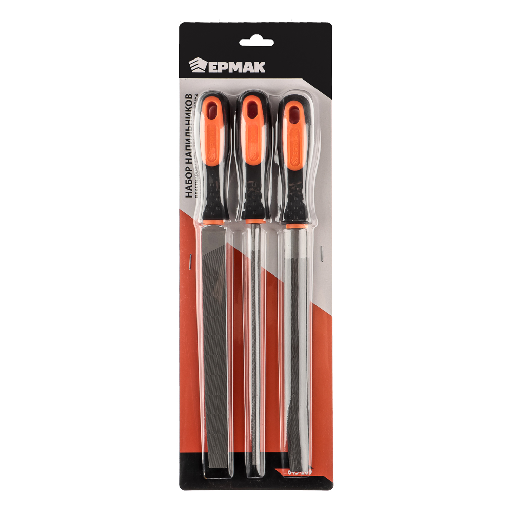 Набор напильников ЕРМАК - Предназначен для обработки и обтачивания деталей из дерева, металла, пластика. Жало длиной 200 мм изготовлено из углеродистой стали. Эта сталь сочетает в себе лучшие характеристики углеродистой и нержавеющей стали ее твердость и стойкость к коррозии значительно выше, чем у традиционной углеродистой стали.- Полукруглый напильник удобен для опиловки круглых деталей различного радиуса. - Круглый удобен для расширения и обтачивания отверстий.- Плоский напильник используют для обработки плоских поверхностей, боковые грани дают возможность нарезать пазы.