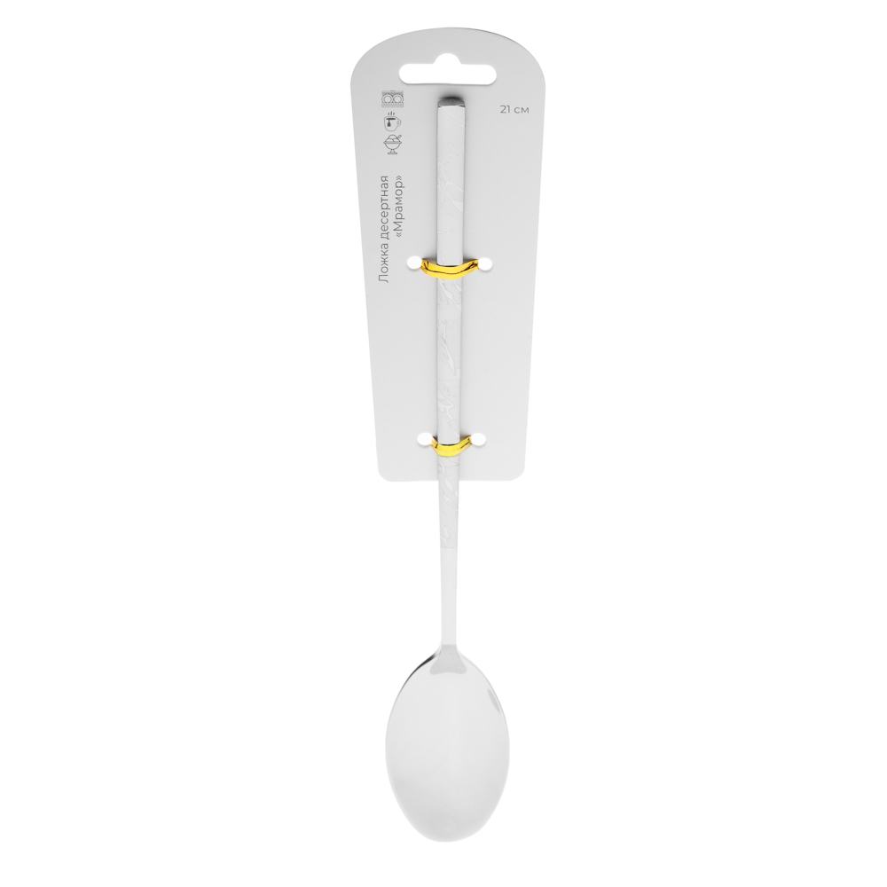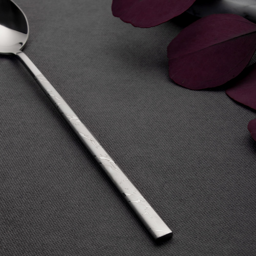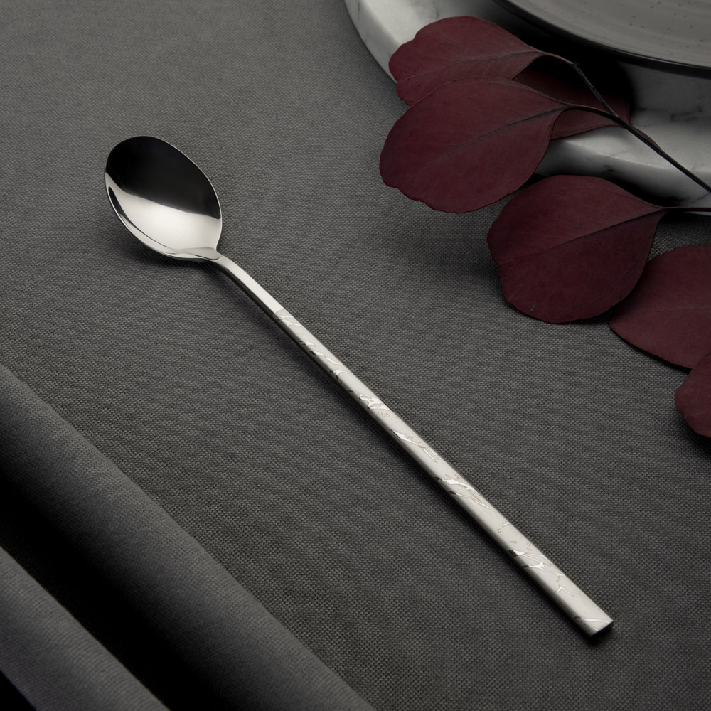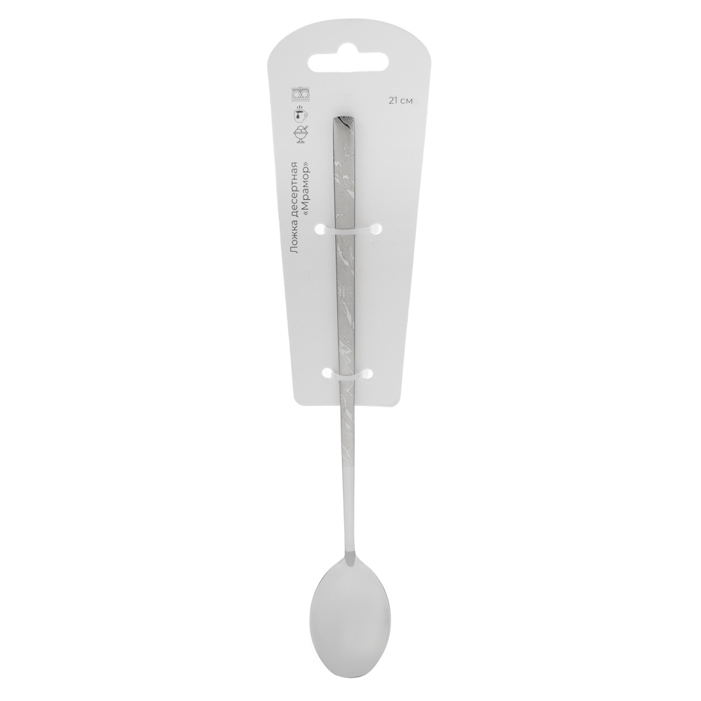 Оригинальная десертная ложка с удлиненной ручкой "Мрамор", 21 см, станет достойным украшением домашнего обеда и подчеркнет безупречный стиль любого заведения. Отличительная черта столового прибора — изысканная простота. Десертная ложка из нержавеющей стали не боится температурных перепадов, сильного нагрева, взаимодействия с кислыми блюдами. Изделие не темнеет, не деформируется и радует хозяйку безупречным видом долгие десятилетия.
