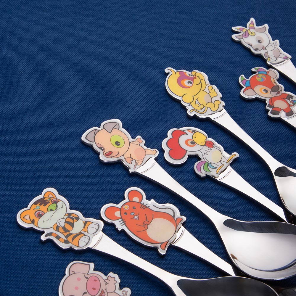 Малышу пора научиться самостоятельно кушать? Без мультяшной детской посуды здесь не обойтись. Во-первых, она вызывает неподдельный интерес у карапуза. Даже если совсем нет аппетита, оригинальный аксессуар заставит зачерпнуть ложку каши. Во-вторых, увлекшись игрой с необычными столовыми приборами, малыш забывает о капризах и активно съедает все, что приготовила мама. Металлическая детская ложка «Зверушка» станет прекрасным помощником новоиспеченных родителей. Увлечет и накормит маленького непоседу за считанные минуты.