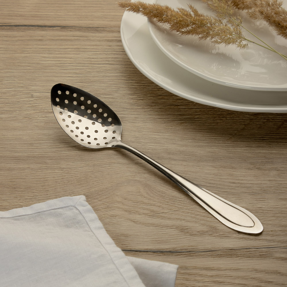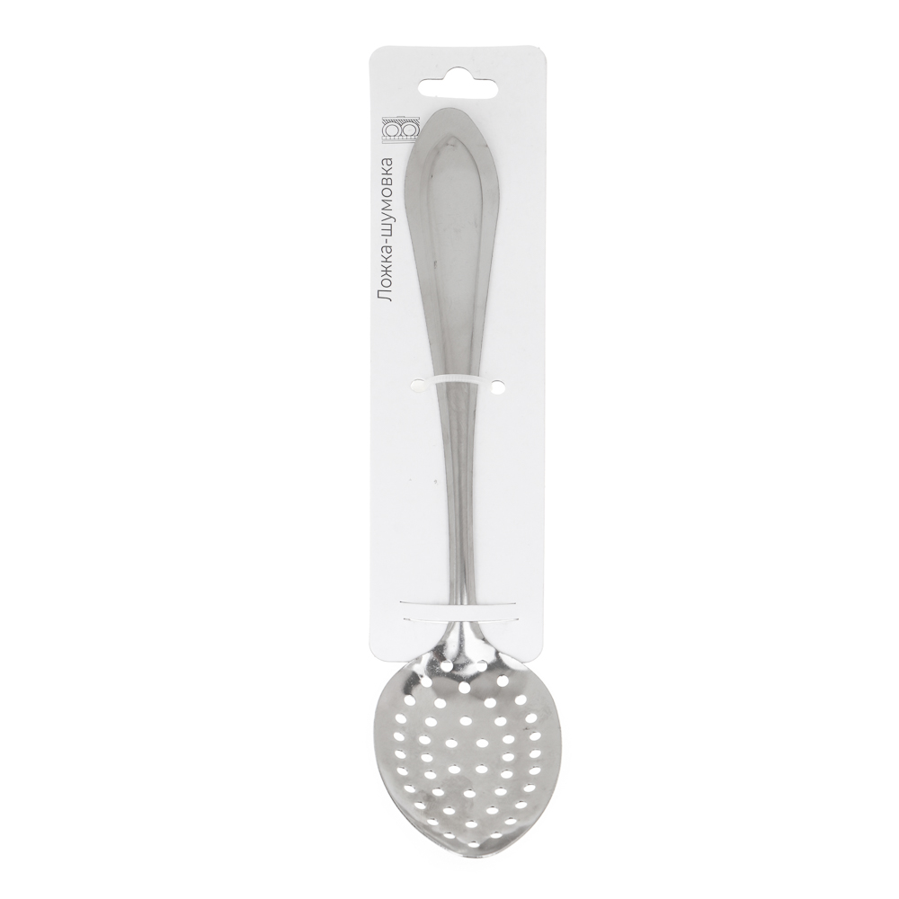 Ложка-шумовка выполнена из высококачественной нержавеющей стали. Стильная стальная ложка-шумовка займет достойное место среди аксессуаров на вашей кухне. Классический дизайн и качество исполнения не оставят равнодушными ни тех, кто просто любит готовить, ни опытных профессионалов-поваров.