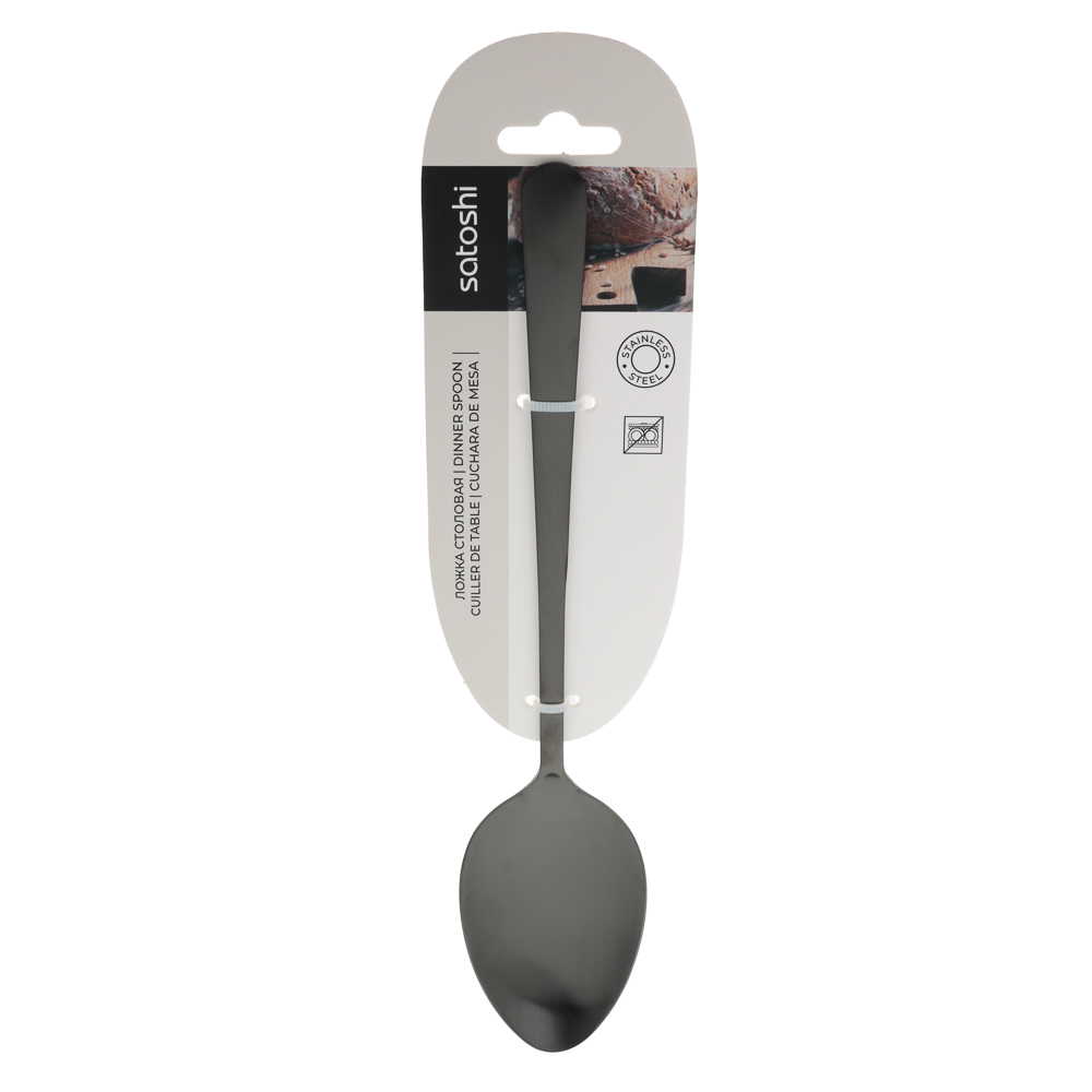 Столовая ложка SATOSHI «Нера» – это высококачественный столовый прибор, который подойдет как для повседневной, так и для праздничной сервировки. Имеет элегантный дизайн в черном цвете и изящную форму с идеально обработанными краями без острых углов. Изделие выполнено из качественной нержавеющей стали, прочное, не гнется, устойчиво к деформации. Удобно ложится в руку. Сочетается с любой посудой, столовыми приборами и текстилем, гармонично дополняя сервировку.
