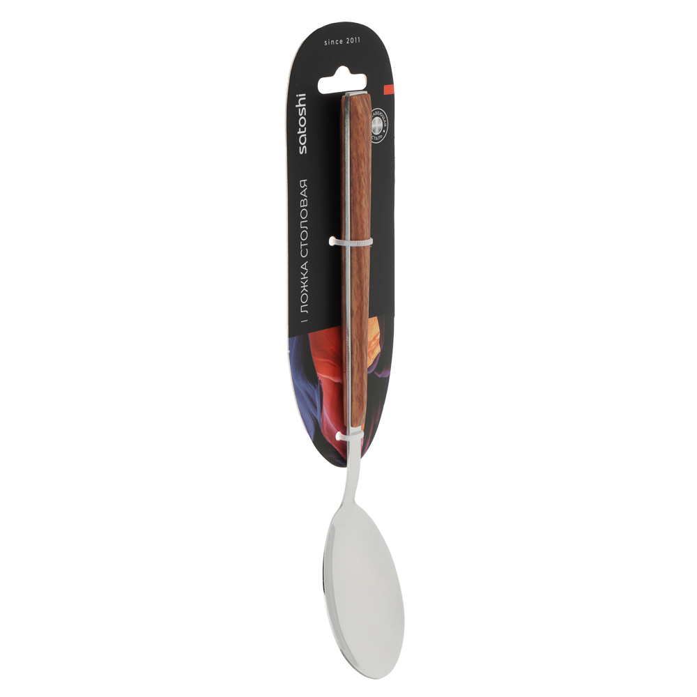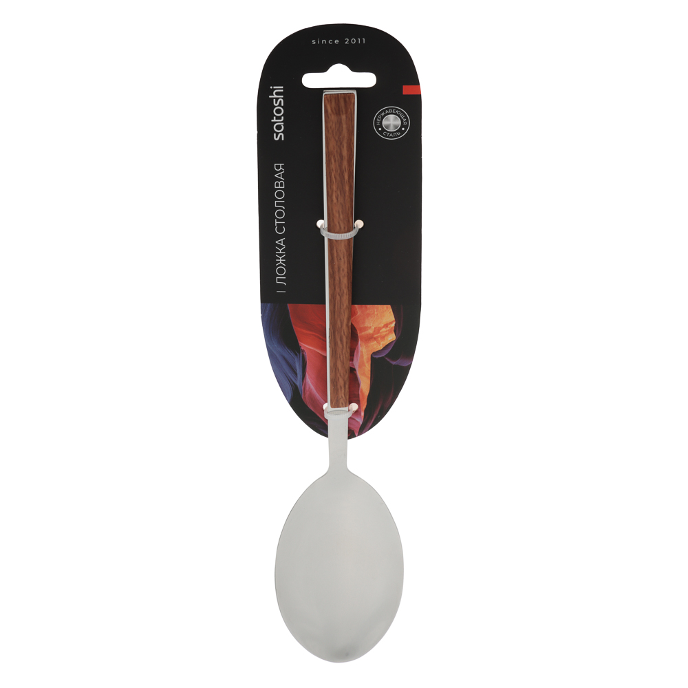 Столовая ложка SATOSHI из коллекции Реймс – стильный и практичный столовый прибор, который станет достойным дополнением как повседневной, так и праздничной сервировки. Изготовлена из высококачественной стали AISI 430, устойчивой к коррозии, что гарантирует долгий срок службы и сохранение безупречного внешнего вида даже при регулярном использовании. Ручка ложки выполнена из пластика, стилизованного под дерево. Изделие удобно лежит в руке, обладает легким весом и повышенной прочностью, не деформируется и сохраняет свои свойства при контакте с любыми продуктами. Столовая ложка SATOSHI Реймс идеально подходит для первых и вторых блюд, а также для сервировки стола.