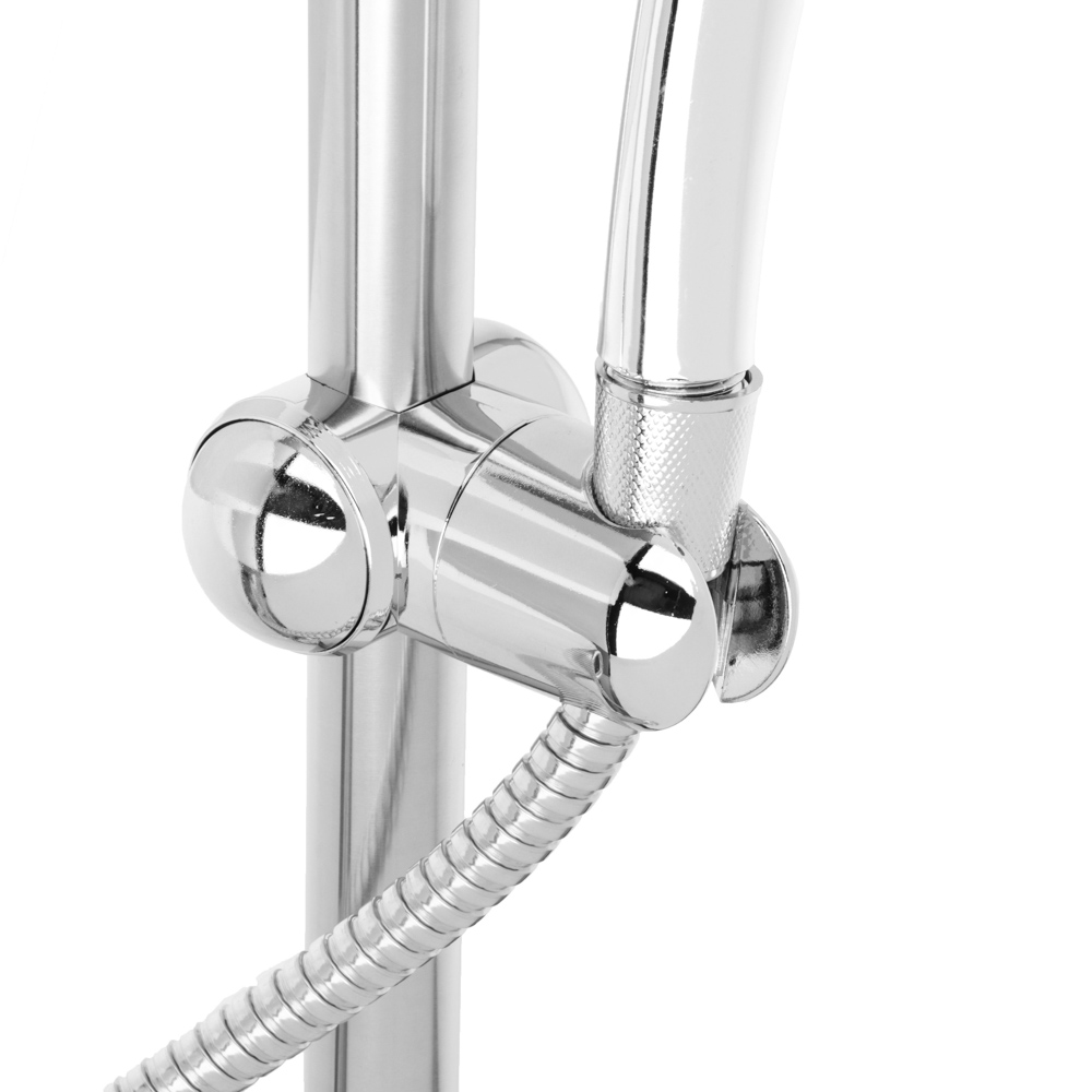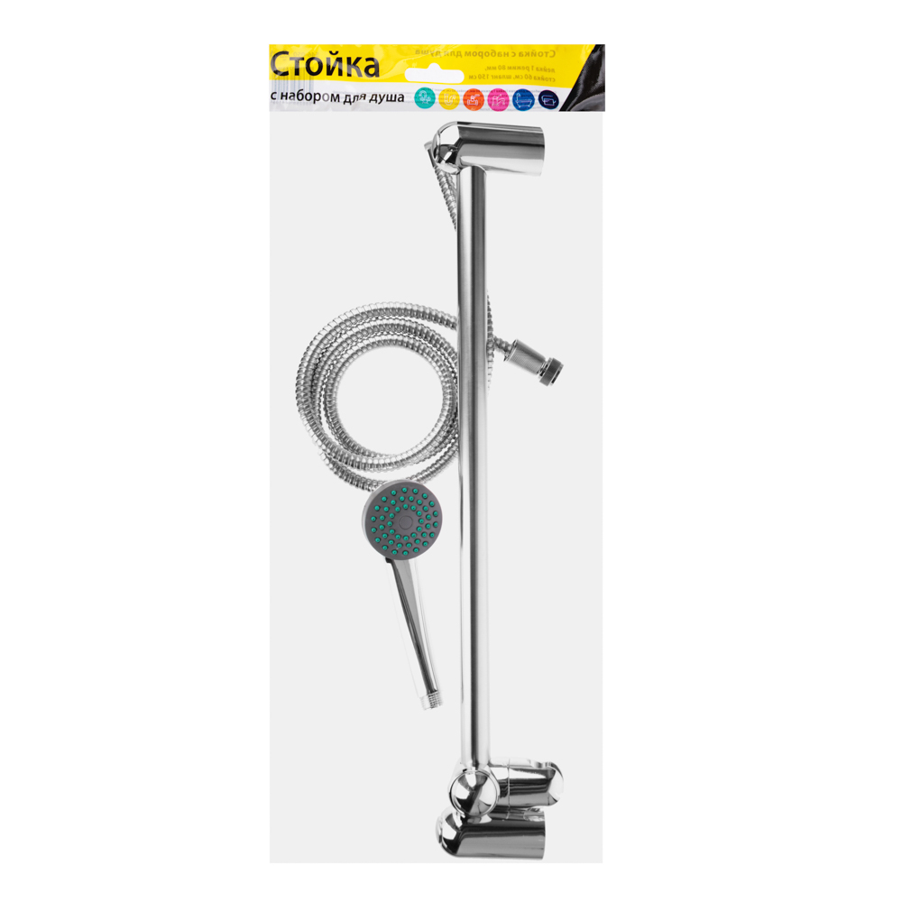 Стойка с набором для душа включает все необходимое для комфортного принятия душа. Стойка длиной 60 см изготовлена из нержавеющей стали, что гарантирует прочность и долговечность конструкции. Лейка диаметром 65 мм имеет один режим подачи воды и универсальный шланг длиной 150 см с резьбой 1/2" – 1/2", который подходит для большинства смесителей. В комплекте также предусмотрен держатель для лейки, обеспечивающий удобное крепление. Набор сочетает простоту использования, надежность и долгий срок службы, делая его идеальным для ванной комнаты.
