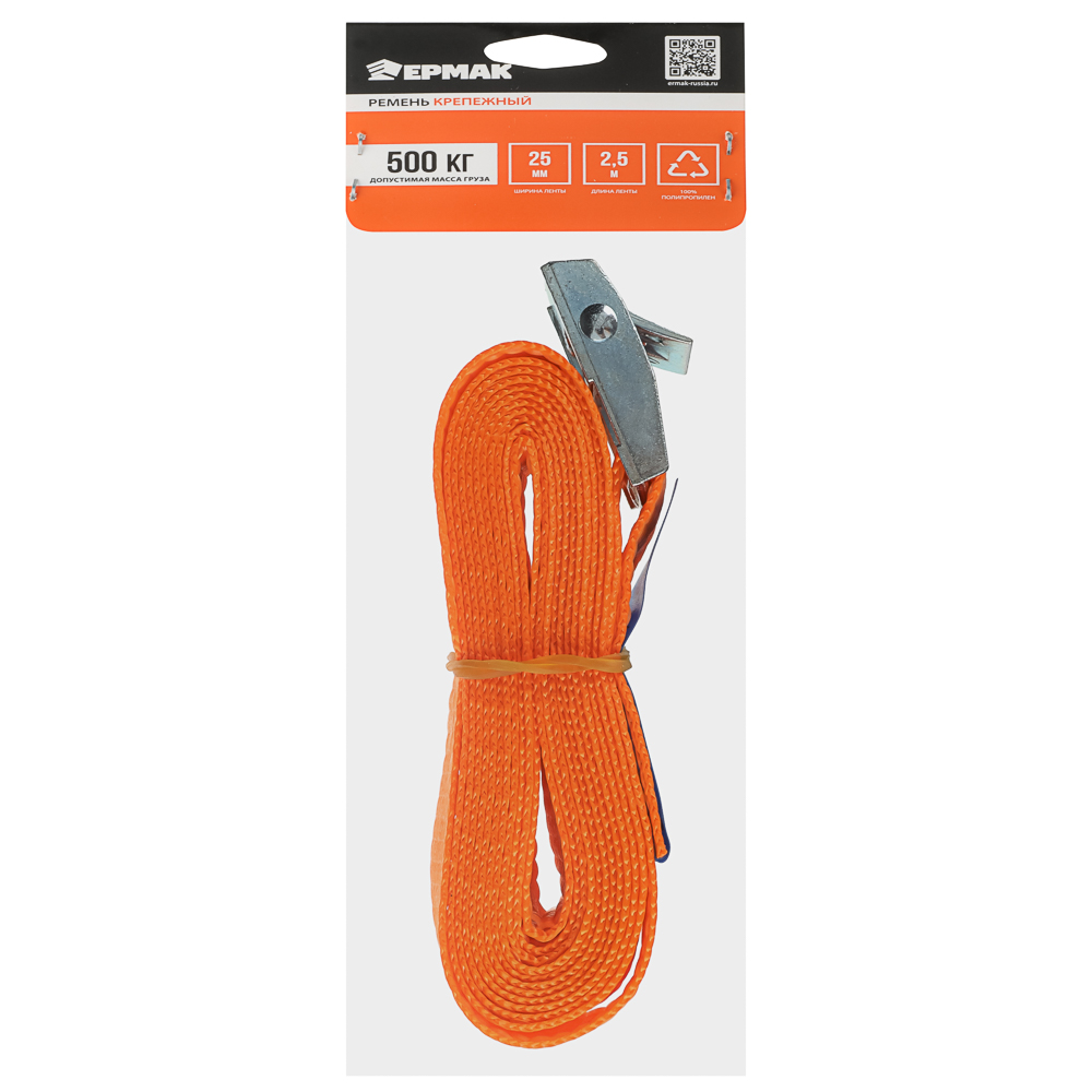 Ремень крепежный с длиной ленты 2,5 м предназначен для быстрого и надежного крепления различных грузов, перевозимых на всех видах транспорта. Используется для перевозки и транспортировки багажа. Максимальная стяжная нагрузка данного ремня для крепления груза – 500 кг. Устойчив к истиранию, не выгорает на солнце.