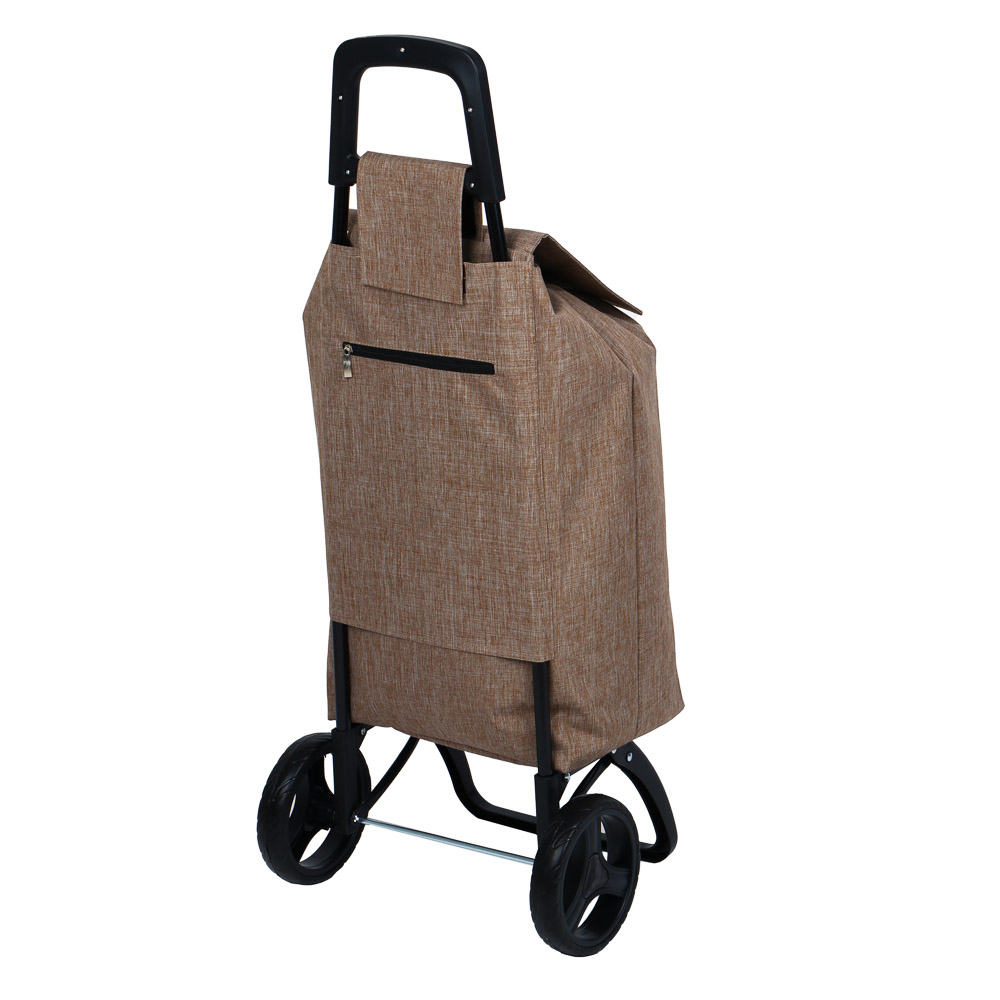 Тележка с сумкой VETTA рассчитана на нагрузку до 30 кг и предназначена для удобной транспортировки покупок, вещей или грузов в домашних и городских условиях. Общий размер тележки 95×41×33 см, сумка объёмом 45 л имеет размеры 36,5×23×57 см и выполнена из прочного материала оксфорд 300D, обеспечивающего долговечность и устойчивость к истиранию. Колёса диаметром 17 см позволяют легко перемещать тележку по различным поверхностям, включая неровные дороги и тротуары.