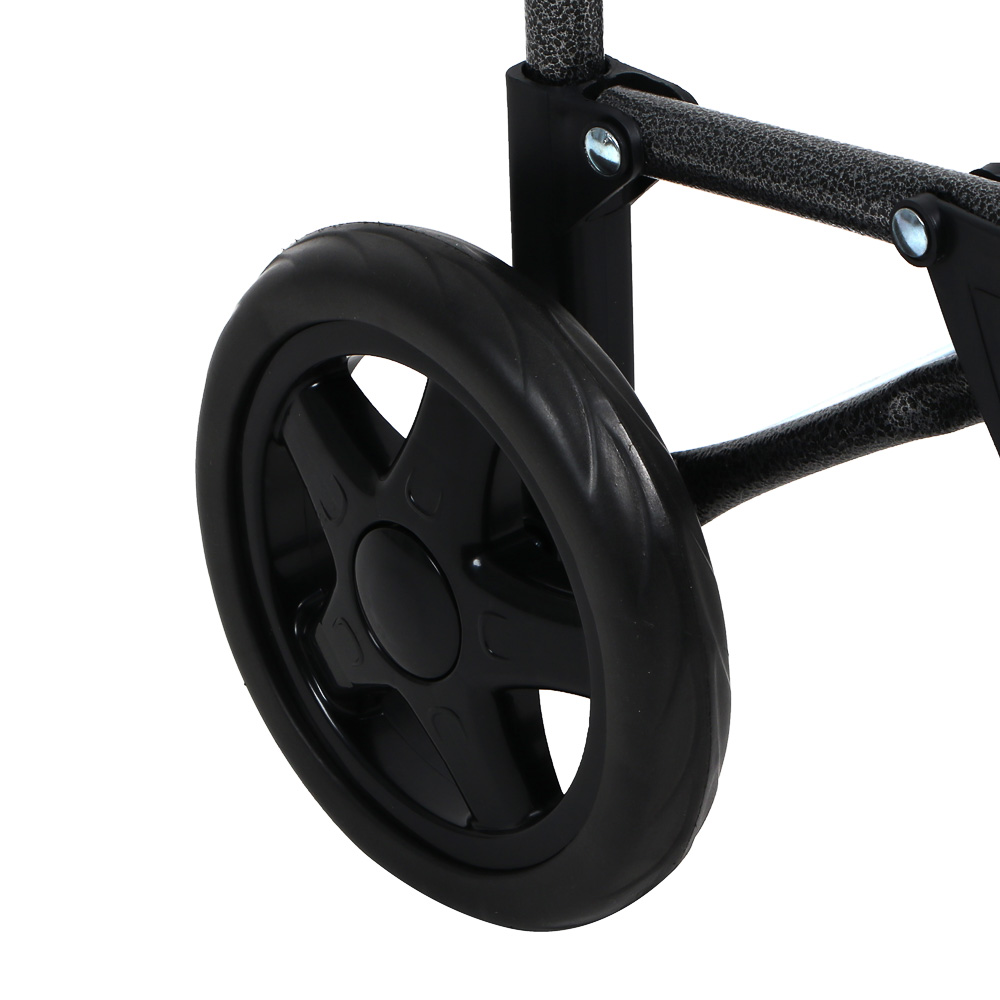 Металлическая конструкция с пластиковыми элементами обеспечивает прочность при сохранении легкого веса. Два колеса из износостойкого материала позволяют легко маневрировать в магазинах, на рынках или вокзалах. Компактные размеры в сложенном состоянии делают тележку удобной для хранения в багажнике автомобиля или домашней кладовой. Универсальная конструкция подходит для перевозки хозяйственных сумок, дорожных чемоданов, коробок и других грузов.
