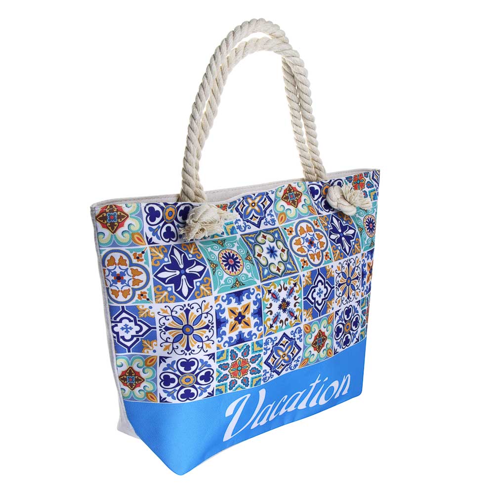 Сумка Майолика от ЮL размером 49х33х14 см – яркий и практичный аксессуар для пляжа или летних прогулок. Выполнена из плотного и прочного полиэстера. Одно просторное отделение на молнии позволяет удобно разместить полотенца, пляжные аксессуары и другие необходимые вещи. Ручки-канаты из текстиля делают сумку удобной для переноски, а также добавляют ей оригинальности. Сумка Майолика, украшенная оригинальным геометрическим орнаментом, станет надежным спутником в отпуске или на пикнике, сочетая в себе функциональность и летний шарм.