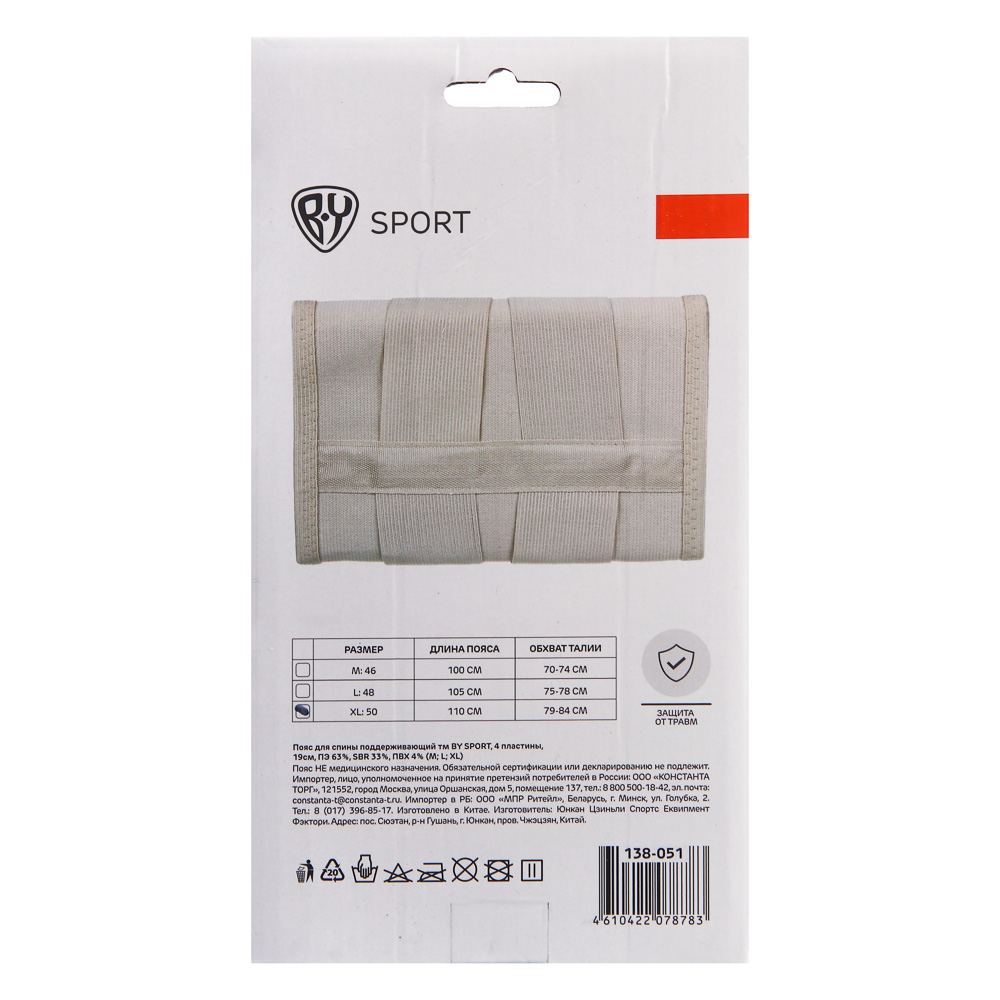 Пояс для спины поддерживающий тм BY SPORT, 4 пластины, 19 см, ПЭ 63%, стирол-бутадиеновый каучук 33%, ПВХ 4% – это аксессуар, созданный для тех, кто работает с серьезными весами. Снижает нагрузку на позвоночник, стабилизирует корпус, фиксирует поясничный отдел и помогает предотвратить травмы, позволяя качественно выполнять упражнения. 4 жесткие пластины обеспечивают максимальный контакт с пояснично-крестцовой зоной, не мешая движению тазобедренных суставов. Плотно облегает, не сползает и не перекатывается. Прочный и износостойкий материал не теряет форму. Застежка на липучке позволяет точно регулировать обхват и обеспечивает надежную фиксацию. Подходит для занятий пауэрлифтингом, тяжелой атлетикой, кроссфитом и любыми видами силовых тренировок. Доступные размеры: M; L; XL.