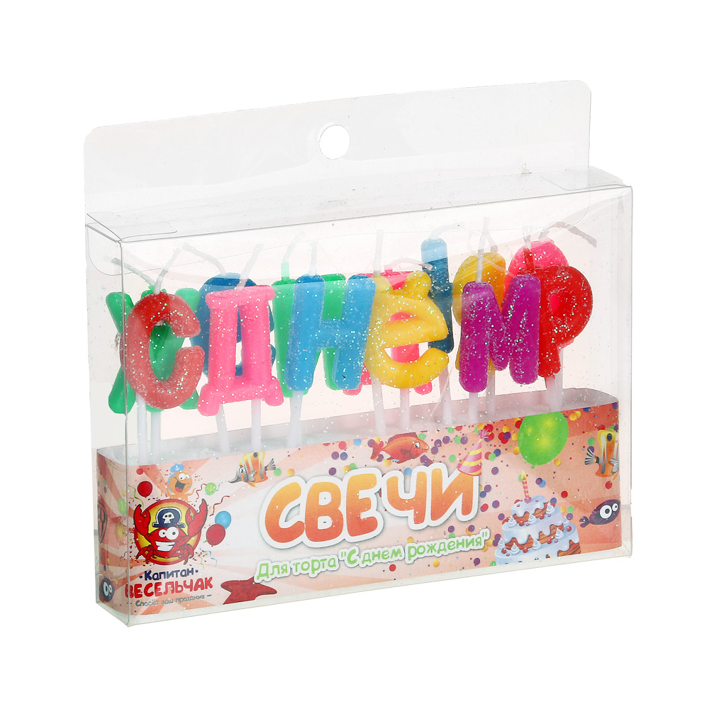 Свечи для торта Капитан Весельчак в виде букв с надписью "С Днем Рождения" — яркое украшение для торта! Каждая свеча покрыта блеском, что придает ей праздничный вид и делает ее еще более эффектной. Свечи создадут незабываемую атмосферу на вашем торжестве и точно понравятся всем гостям!