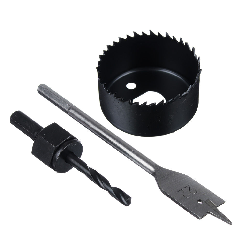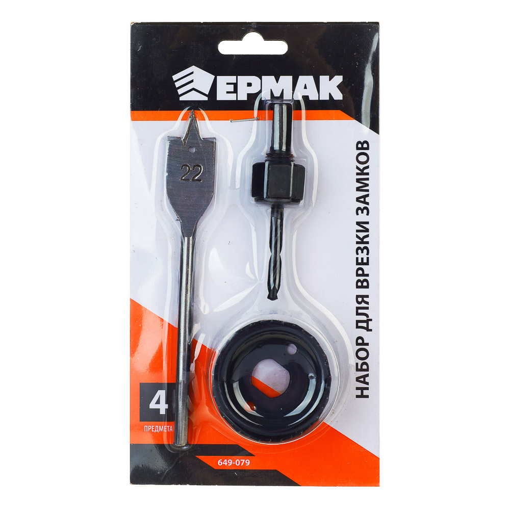 Набор для врезки замков ЕРМАК состоит из 4-х предметов, включая перовое сверло с шестигранным хвостовиком, кольцевую пилу и направляющее сверло. Используется для установки замков в дверях из древесины, а также для создания сквозных отверстий в таких материалах как ДСП, ДВП, гипсокартон. Все элементы выполнены из углеродистой стали и имеют высокий запас прочности.