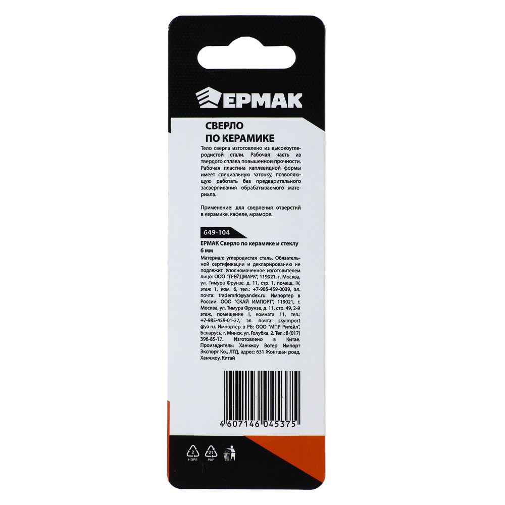 Износостойкое сверло ЕРМАК 6 мм с каплевидной режущей частью предназначено для сверления отверстий в стекле, керамической и кафельной плитке. Специальная заточка режущих кромок улучшает прохождение материала, тем самым исключая вероятность образования трещин и сколов во время сверления. Изделие выполнено из высококачественной углеродистой стали, что гарантирует долгий срок службы и высокую производительность. Для увеличения срока службы сверла рекомендуем проводить работу на низких оборотах (не более 600 об/мин).