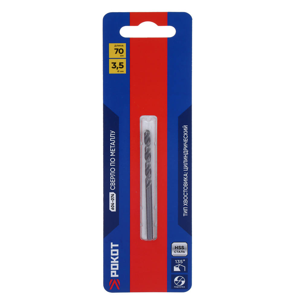 Сверло РОКОТ идеально подходит для использования в быту и профессиональной сфере. Оно обеспечивает быстрое и точное сверление, а также долгий срок службы благодаря своей прочности и устойчивости к износу. Сверло имеет цилиндрический хвостовик, что гарантирует надёжное крепление в патроне инструмента. Угол заточки 135 градусов позволяет сверлить отверстия с высокой точностью и аккуратностью. Изготовленное из высококачественной стали, сверло обладает прочностью и стойкостью к коррозии, что делает его идеальным выбором для работы с различными видами металлов и сплавов. Диаметр сверла — 3,5 мм, длина — 70 мм.