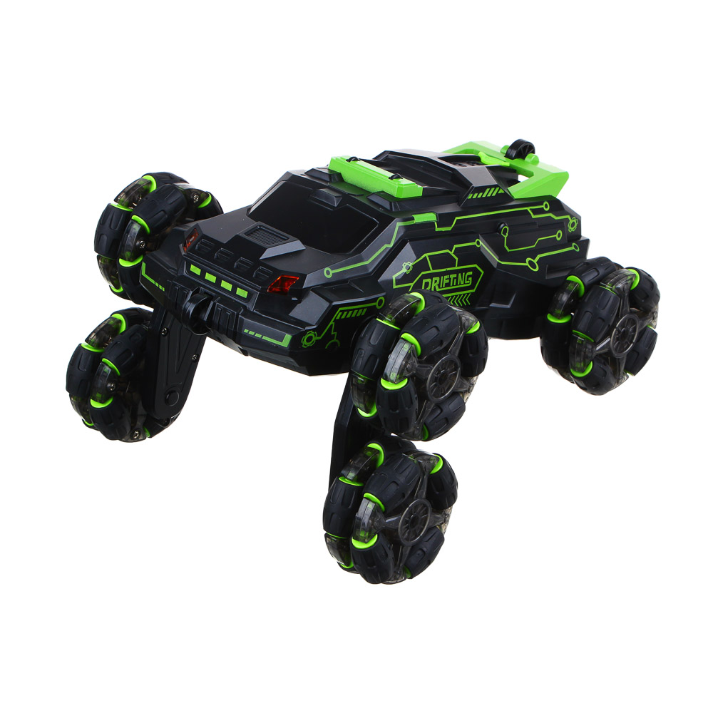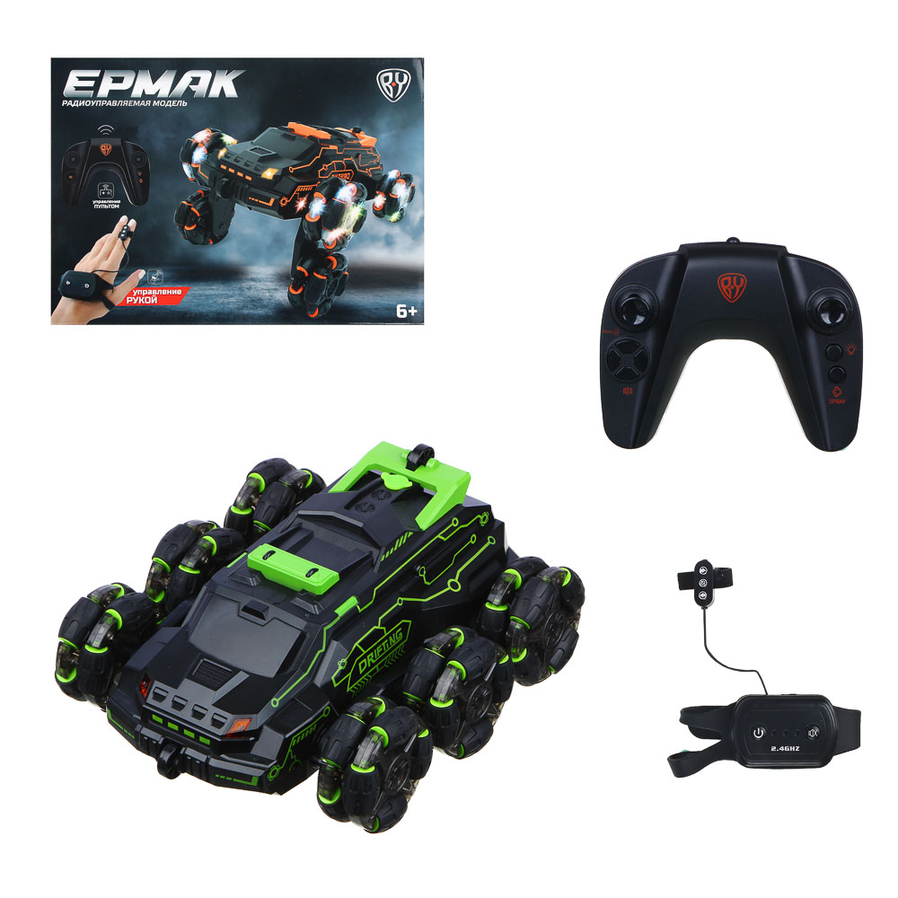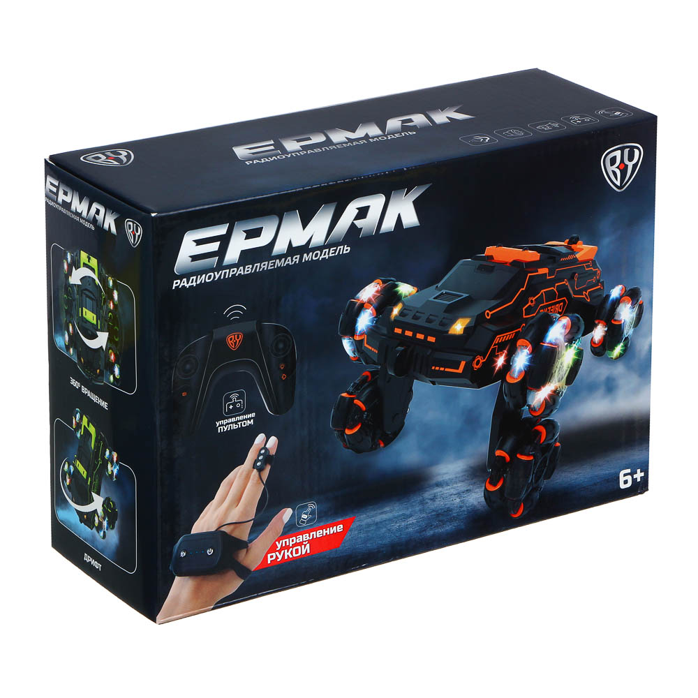 Радиоуправляемая машинка – это не просто машинка, а трюковой автомобиль. С ним ваш ребенок сможет совершать каскадерские трюки – колеса двигаются во всех направлениях, обеспечивая высокую проходимость, а форма машинки позволяет совершать переворот на 180 градусов. Еще больше спецэффектов добавит светодиодная подсветка. В комплекте имеется аккумулятор и зарядное устройство. Пульт управления расположен в браслете, который удобно фиксируется на руке.