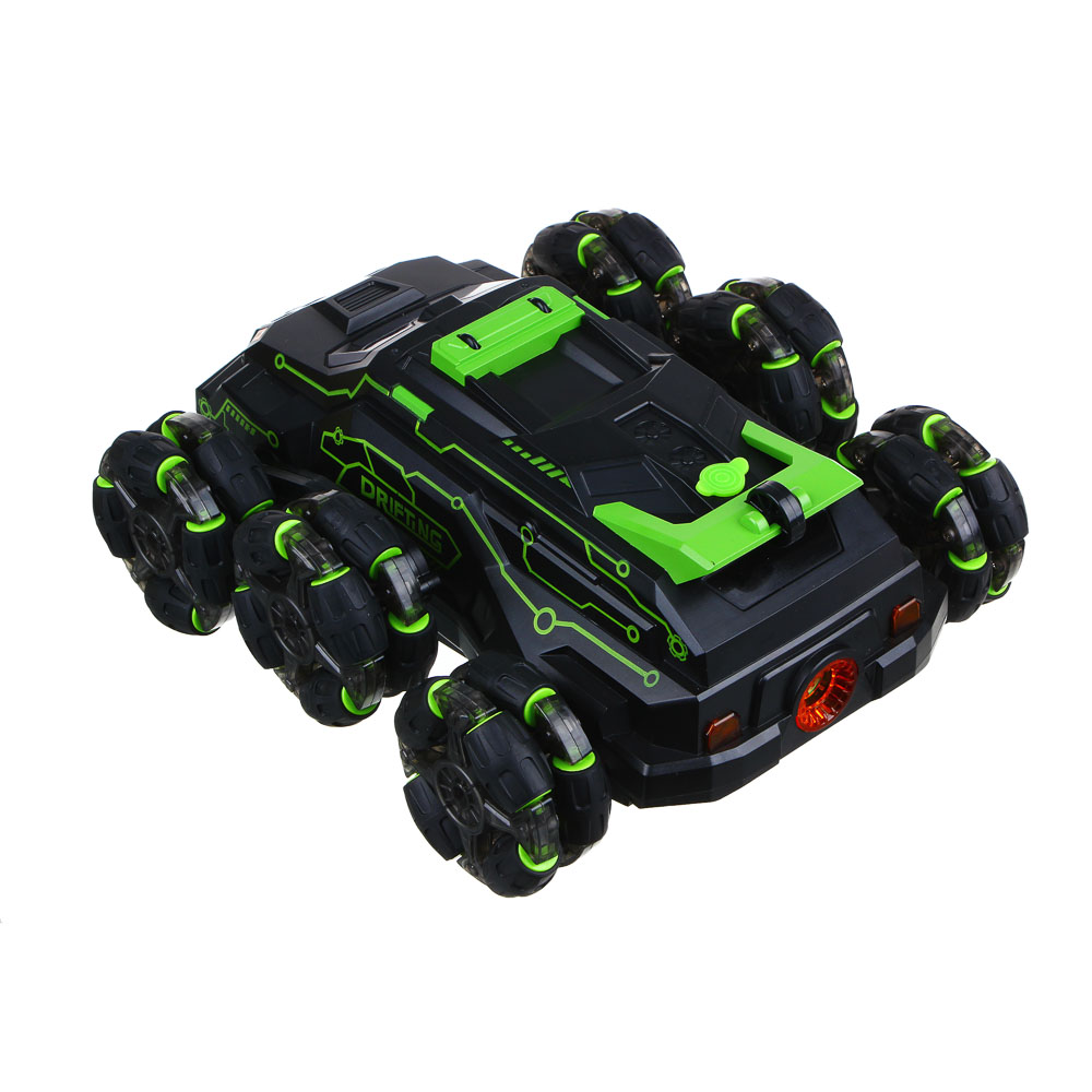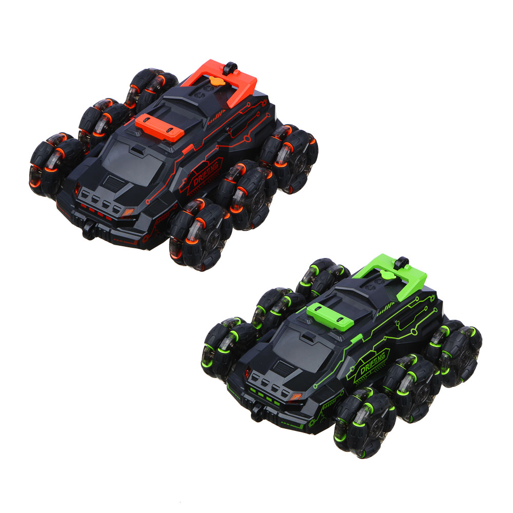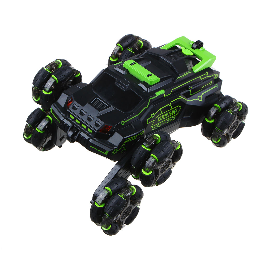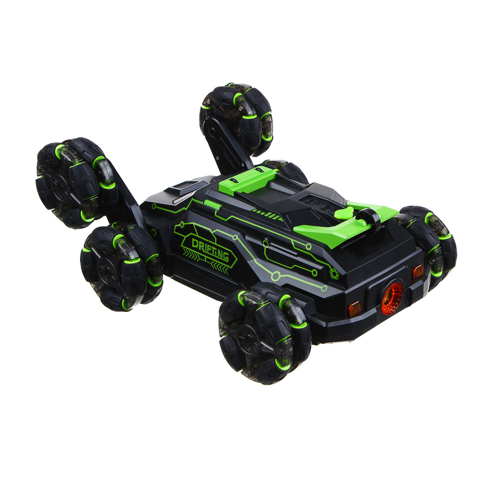 Радиоуправляемая машинка – это не просто машинка, а трюковой автомобиль. С ним ваш ребенок сможет совершать каскадерские трюки – колеса двигаются во всех направлениях, обеспечивая высокую проходимость, а форма машинки позволяет совершать переворот на 180 градусов. Еще больше спецэффектов добавит светодиодная подсветка. В комплекте имеется аккумулятор и зарядное устройство. Пульт управления расположен в браслете, который удобно фиксируется на руке.