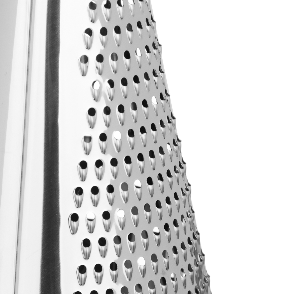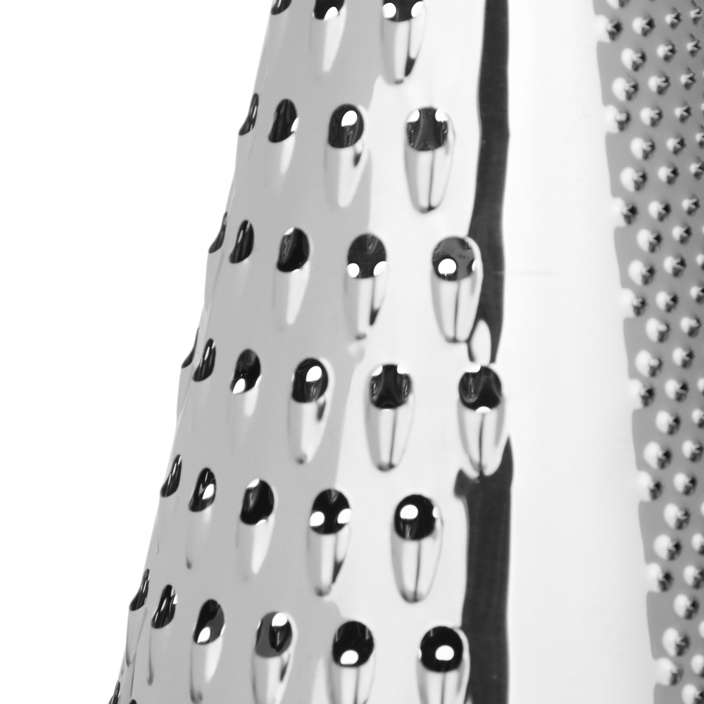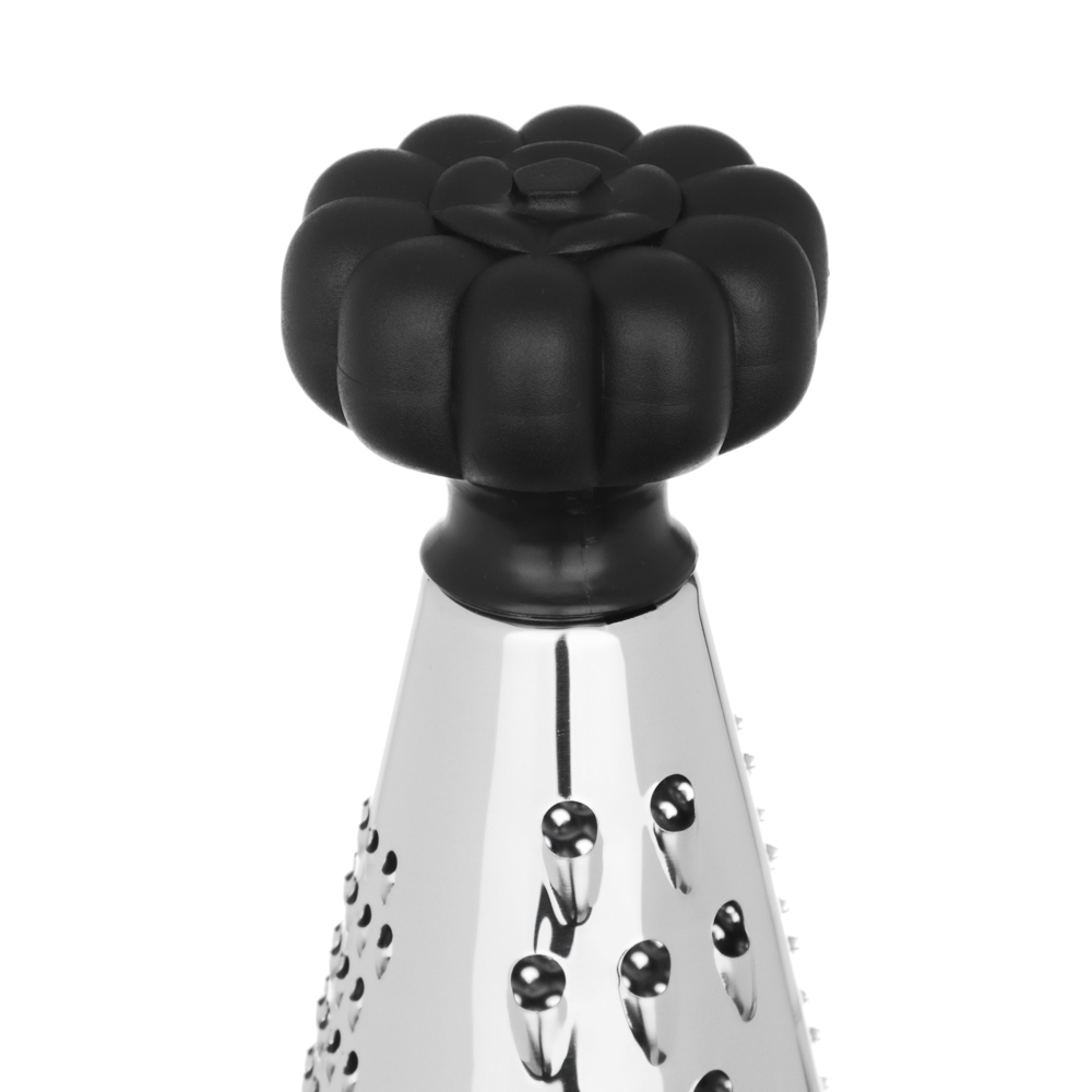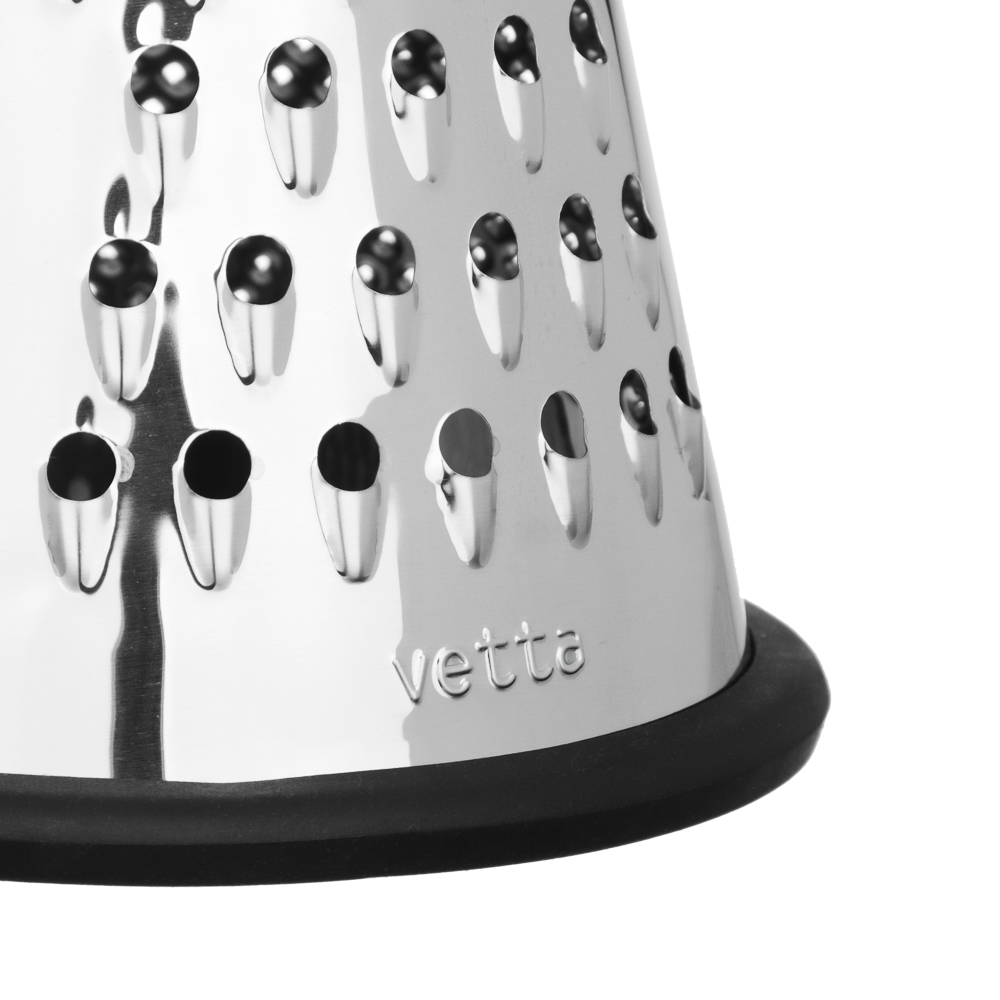 Когда нужно быстро и аккуратно натереть сыр, овощи или шоколад, коническая терка VETTA 25 см станет вашим главным помощником. Форма конуса позволяет равномерно и быстро обрабатывать продукты. Удобно держать в руке, не устаёт запястье даже при длительной работе. Вся рабочая поверхность выполнена из нержавеющей стали, заточена точно, режет чисто и без усилий. Черная эргономичная ручка приятна на ощупь, не скользит.