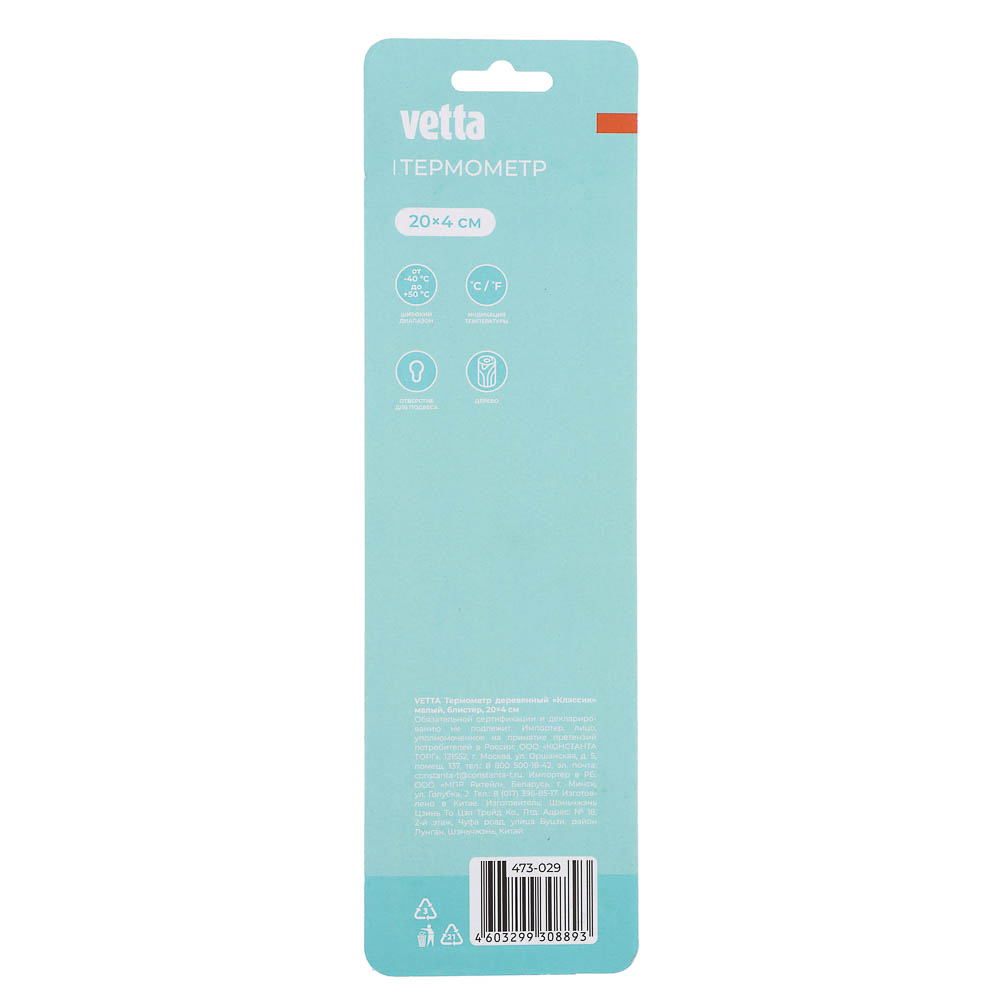 Термометр деревянный Vetta Классик малый - это высокоточный прибор, измеряющий температуру воздуха с точностью до нескольких градусов, можно определять температур по шкалами Цельсия и Фаренгейта. Изделие не содержит ртути. Классический дизайн и простота крепления позволяют разместить термометр в любом удобном месте. Оснащен удобной металлической петелькой для подвешивания.