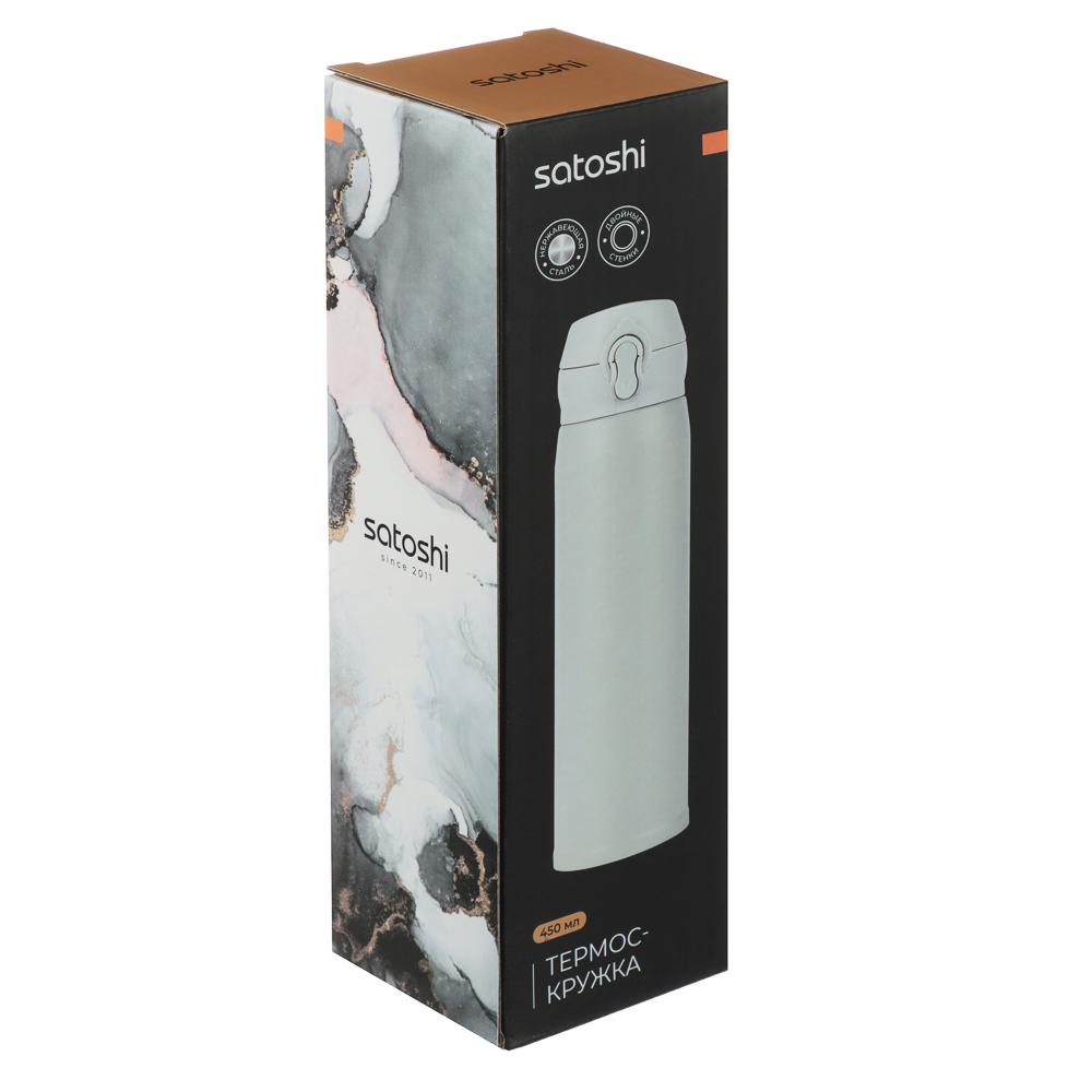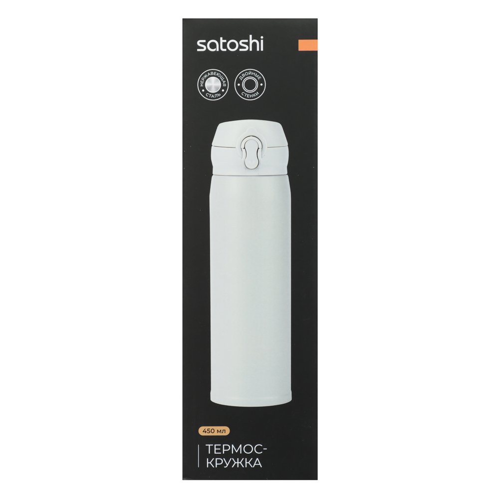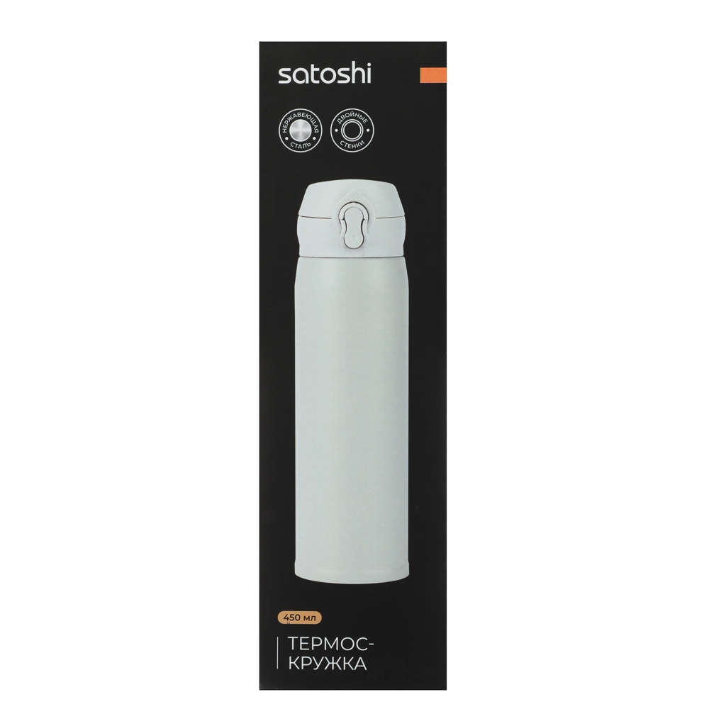Кружка-термос SATOSHI объемом 450 мл с двойными стенками корпуса сохраняет напитки теплыми дольше обычного. Изделие выполнено из нержавеющей стали, обладающей гигиеничностью, отличными теплоизоляционными свойствами и повышенной устойчивостью к механическим повреждениям. Надежная крышка исключает проливание жидкости. Такой аксессуар удобно использовать на отдыхе, работе и в автомобиле.