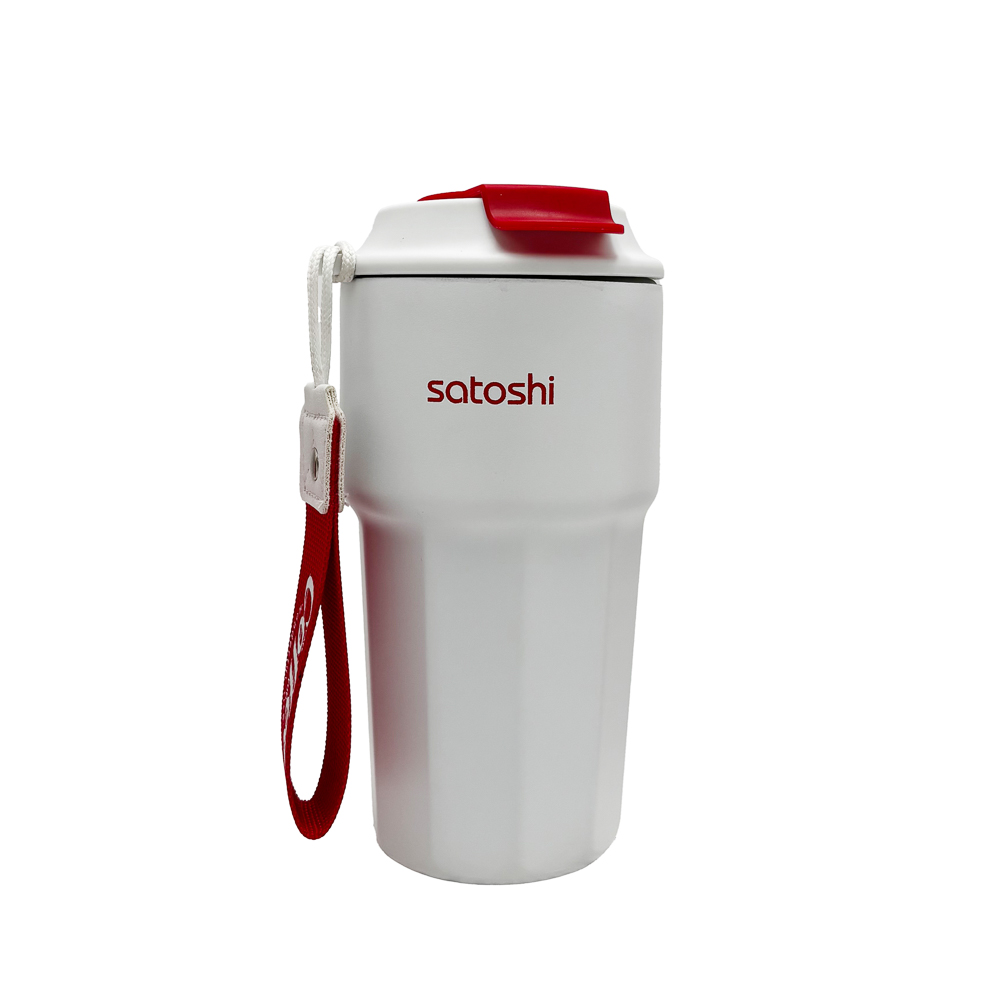 Термос-кружка SATOSHI объемом 420 мл в белом цвете – для тех, кто не готов мириться с остывшим кофе и теплой минералкой! Изготовлена из высококачественной нержавеющей стали 18/10. Надежно сохраняет температуру напитков: до 9 часов горячими и столько же холодными. Особенностью этой модели является полная совместимость со стандартными автомобильными держателями – теперь вы можете удобно расположить кружку в машине и наслаждаться любимым напитком в пробке или долгой дороге. Герметичная крышка с удобным отверстием для питья полностью исключает протекание, а практичный шнурок позволяет легко носить термос-кружку с собой или закрепить на рюкзаке. Уход за термокружкой не требует особых усилий – она легко моется в посудомоечной машине, сохраняя свой безупречный вид. Незаменимый помощник для автолюбителей, путешественников, студентов и деловых людей!