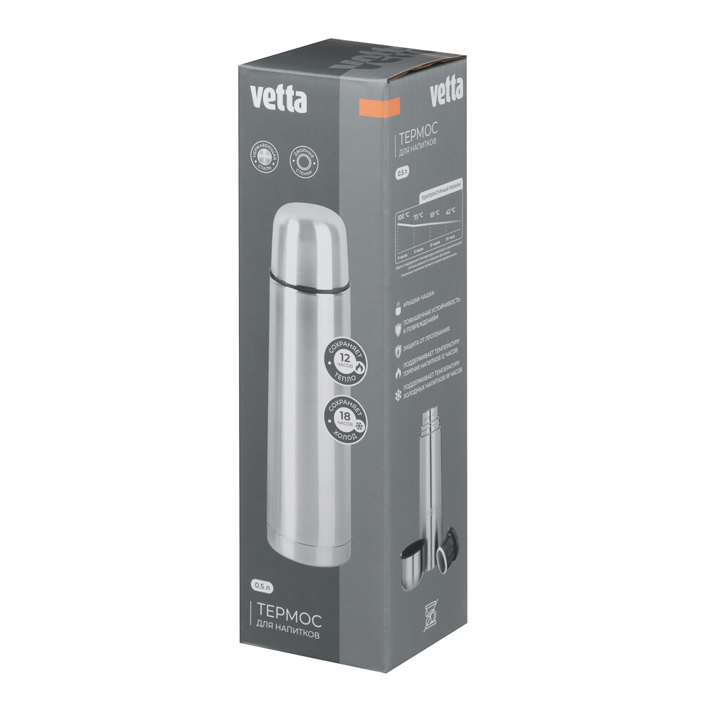 Термос VETTA Буллет объемом 0,5 л из нержавеющей стали для напитков станет практичным спутником во время отдыха на природе и в поездках. Материал устойчив к механическим повреждениям, благодаря чему термос удобно брать в туристические походы. Нержавеющая сталь хорошо удерживает тепло, не меняет вкус и аромат напитков. Герметическая крышка надежно удерживает тепло внутри. Дополнительно она может использоваться в качестве чашки.