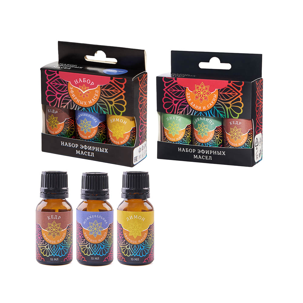 Набор эфирных масел — это универсальное решение для ароматерапии, массажа, ухода за телом и создания расслабляющей атмосферы дома или в бане. В комплект входят три флакона по 15 мл с натуральными маслами, подобранными в гармоничные сочетания. Эфирные масла оказывают благотворное влияние на эмоциональное состояние, способствуют расслаблению, повышают тонус и наполняют помещение приятным ароматом. Каждое масло можно использовать как самостоятельно, так и в комбинации, добавляя в аромалампы, ванны или косметические средства. Компактная упаковка делает набор отличным подарком для тех, кто ценит заботу о себе и природные ароматы.