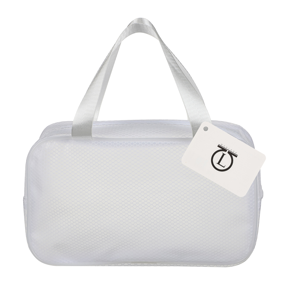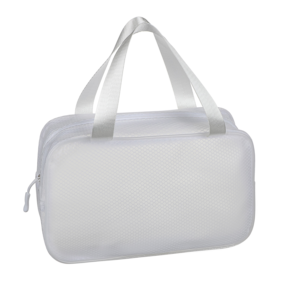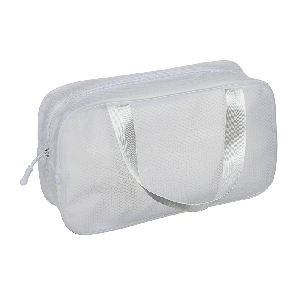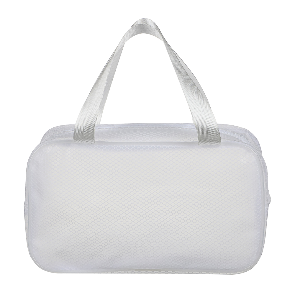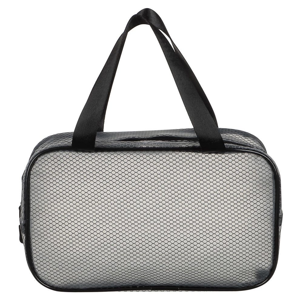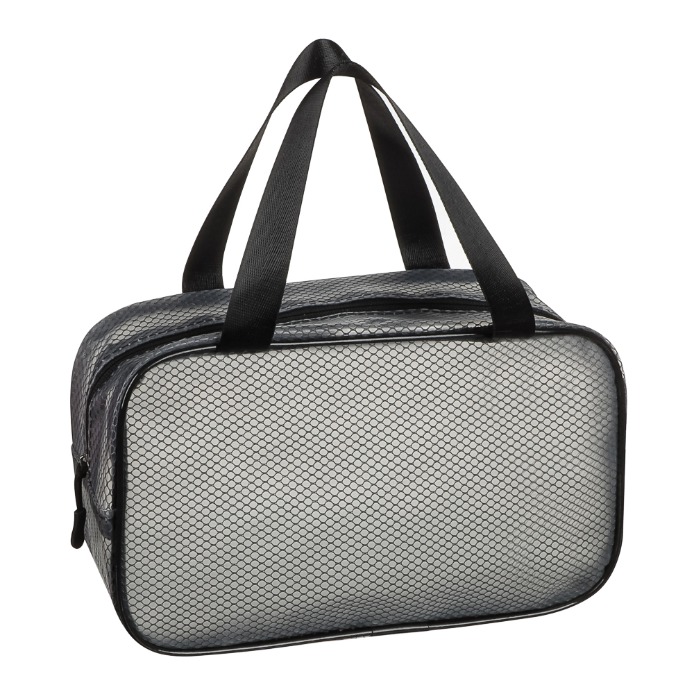 Косметичка ЮL размером 26,5х18х10 см на молнии выполнена из прочного влагостойкого ПВХ, легко моется и надолго сохраняет аккуратный внешний вид. Благодаря прозрачным стенкам все необходимые вещи всегда на виду, а вместительное отделение позволяет удобно разместить косметику, средства гигиены и аксессуары. Компактный формат делает её идеальным вариантом для дома, путешествий или походов в спортзал, а приятный цвет и удобные ручки придают аксессуару стильный и современный вид. Косметичка ЮL – это сочетание практичности, удобства и красоты для каждой девушки. Цвет в ассортименте.