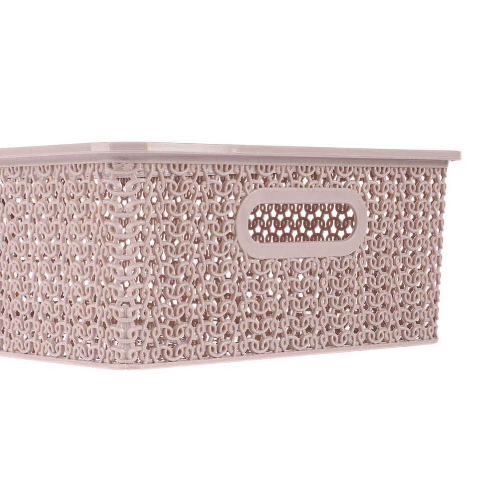 Прямоугольная корзинка «Вязь» объёмом 7,5 литра — удобное и стильное решение для хранения дома или в офисе. Изготовлена из прочного полипропилена, устойчива к влаге, легко моется и долго сохраняет форму. Элегантный розовый нюд гармонично впишется в любой интерьер, а практичная крышка защитит содержимое от пыли и случайного проливания. Идеально подходит для хранения косметики, игрушек, мелких вещей или кухонных принадлежностей. Компактные размеры 35×24,5×10,5 см позволяют удобно разместить корзинку на полках, в шкафах или на рабочем столе, сохраняя порядок и уют.