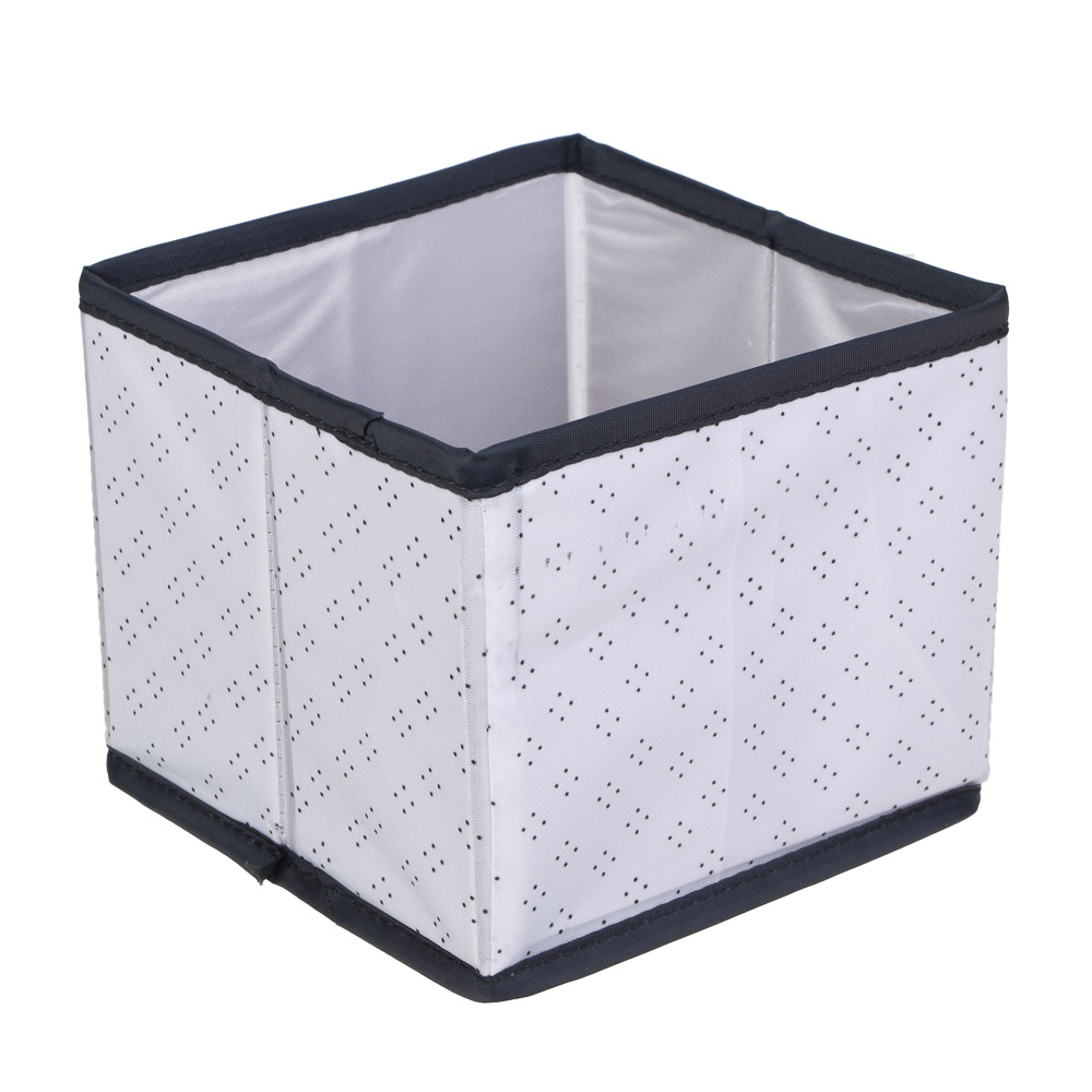 Короб VETTA «Дафна» без крышки — это универсальное и стильное решение для хранения различных предметов. Он изготовлен из прочного и долговечного материала оксфорд, что гарантирует долгий срок службы. Короб имеет размеры 15x15x13 см, что делает его компактным и удобным для использования в любом помещении. Благодаря своему стильному дизайну с чёрно-белым рисунком в горошек, он прекрасно впишется в любой интерьер и станет его изюминкой. Прост в уходе и обслуживании. При необходимости его можно легко очистить от загрязнений с помощью влажной тряпки или губки. Это делает его идеальным выбором для повседневного использования.