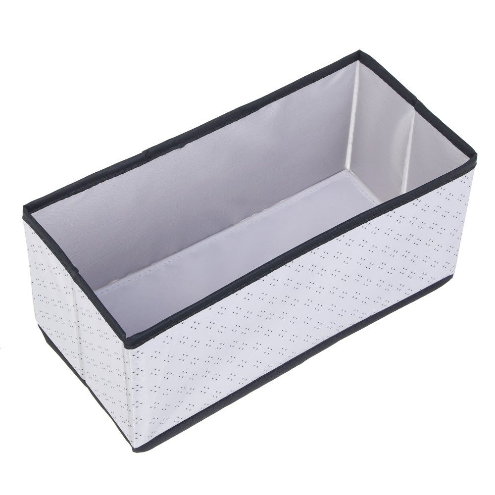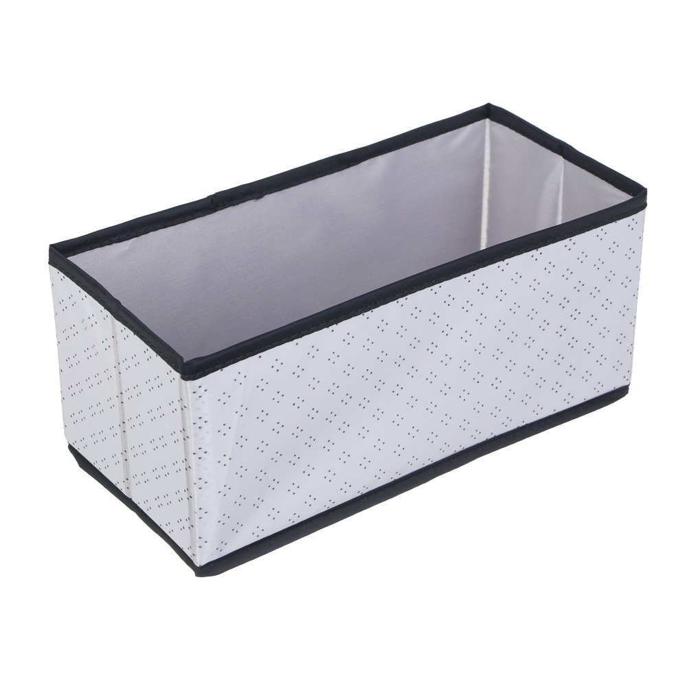 Короб VETTA «Дафна» — это универсальный и практичный аксессуар для хранения различных предметов. Он выполнен из качественного и прочного материала оксфорд, который обеспечивает надёжность и долговечность изделия. Имеет прямоугольную форму и размеры 29x14x13 см, что позволяет использовать его для хранения одежды, обуви, аксессуаров, документов и многого другого. Благодаря своей вместительности и удобной конструкции, он станет незаменимым помощником в вашем доме или офисе. Стильный и современный дизайн короба VETTA «Дафна» с чёрно-белым рисунком в горошек добавит изысканности и шарма любому интерьеру. Он прекрасно впишется в любой стиль оформления комнаты и будет гармонично сочетаться с другими элементами декора. Короб VETTA «Дафна» прост в уходе и обслуживании. При необходимости его можно легко очистить от загрязнений с помощью влажной тряпки или губки.