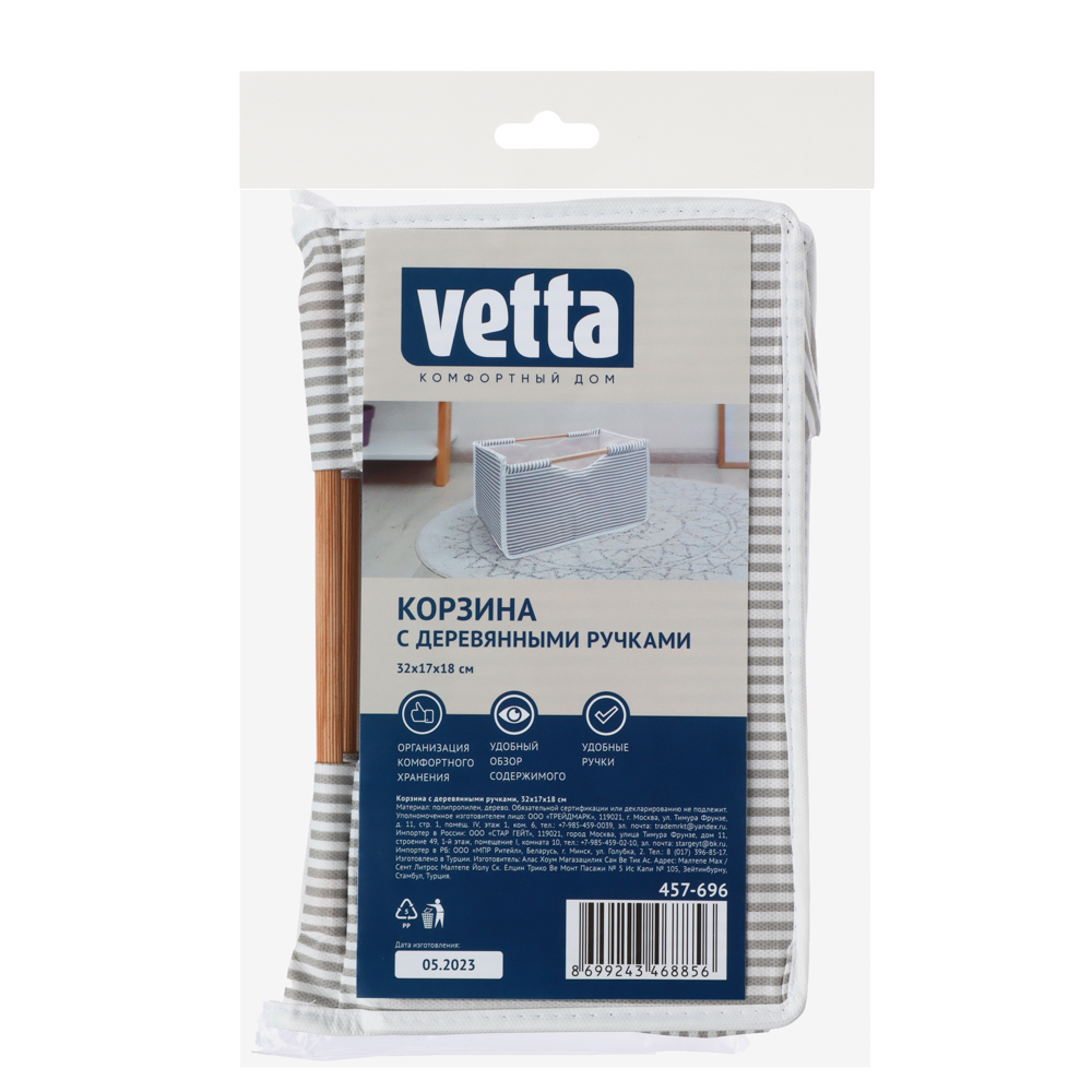Корзина с деревянными ручками VETTA 32x17x18 см имеет увеличенный размер, большую глубину и высокую вместительность. Аксессуар можно использовать в качестве корзины для белья в ванной комнате, а также для хранения вещей и хозяйственных принадлежностей. Корзина легкая, устойчивая, удобна для перемещения, так как оснащена комфортными ручками. Универсальный дизайн с базовой расцветкой впишется в интерьер любого помещения.