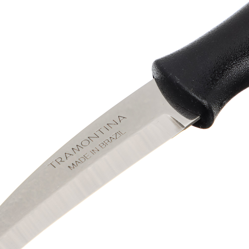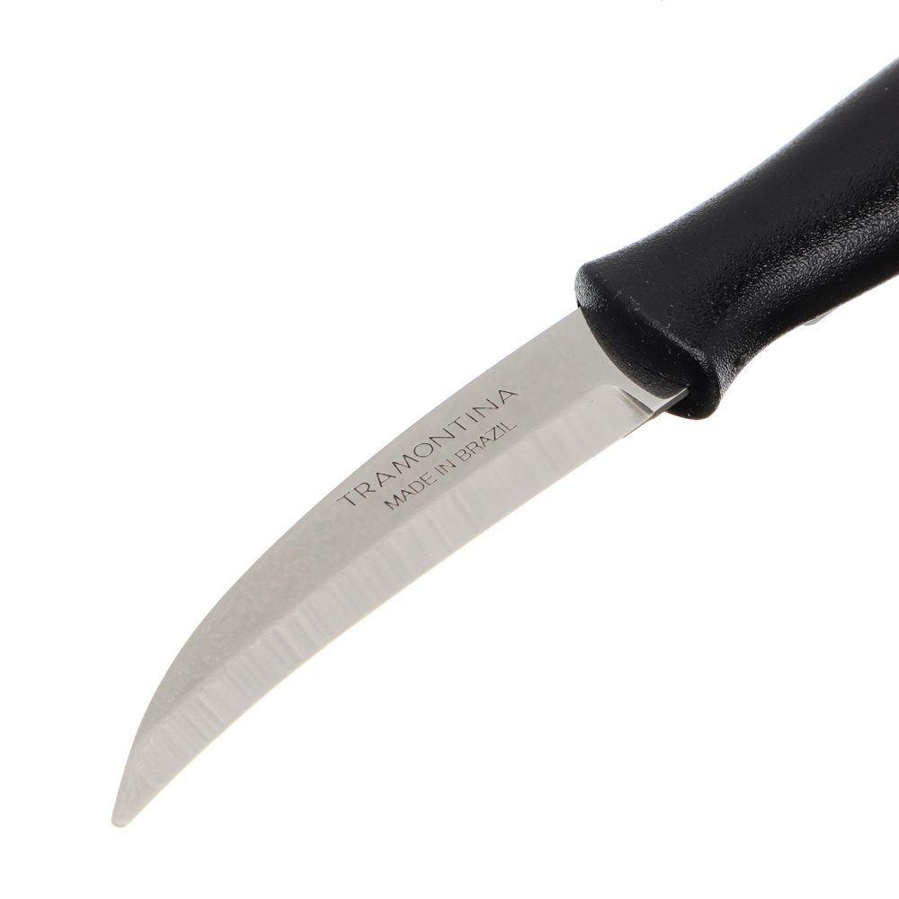 Благодаря своей загнутой форме овощной нож Tramontina Athus идеально подходит для чистки фруктов и овощей, а также для вспарывания коробок и пакетов. Лёгкий и удобный в руке. Преимущества: качественная нержавеющая сталь и приятная на ощупь полипропиленовая рукоять. Длина лезвия: 8 см.