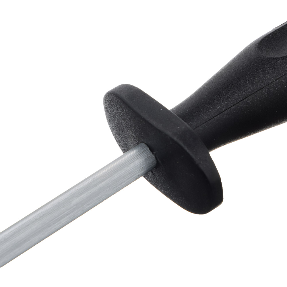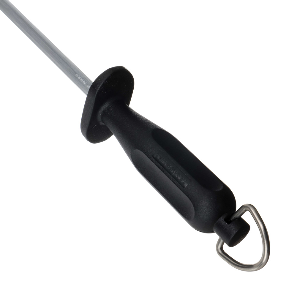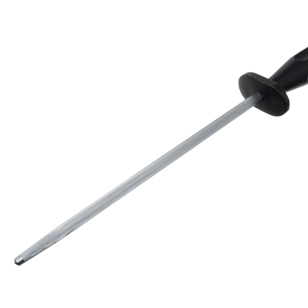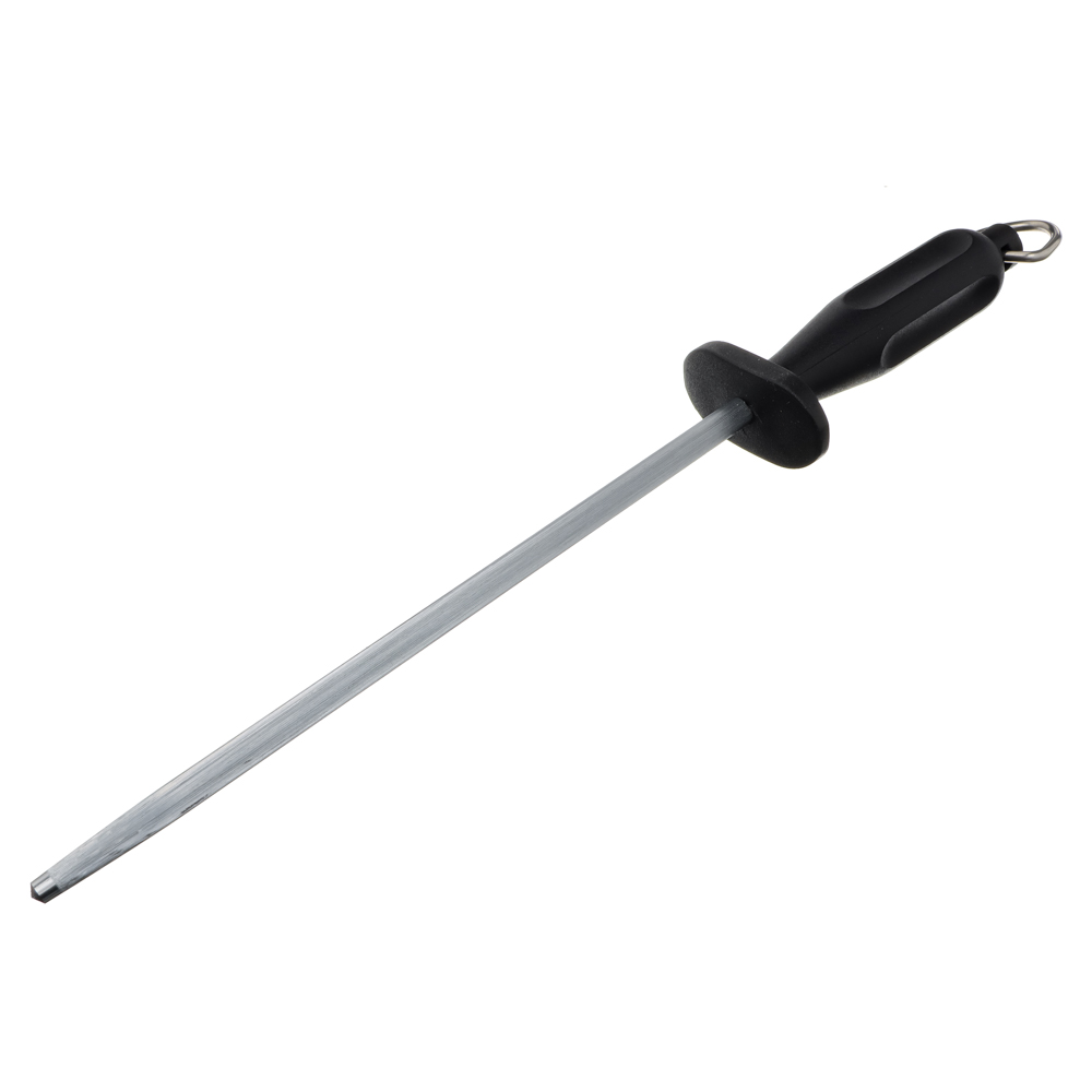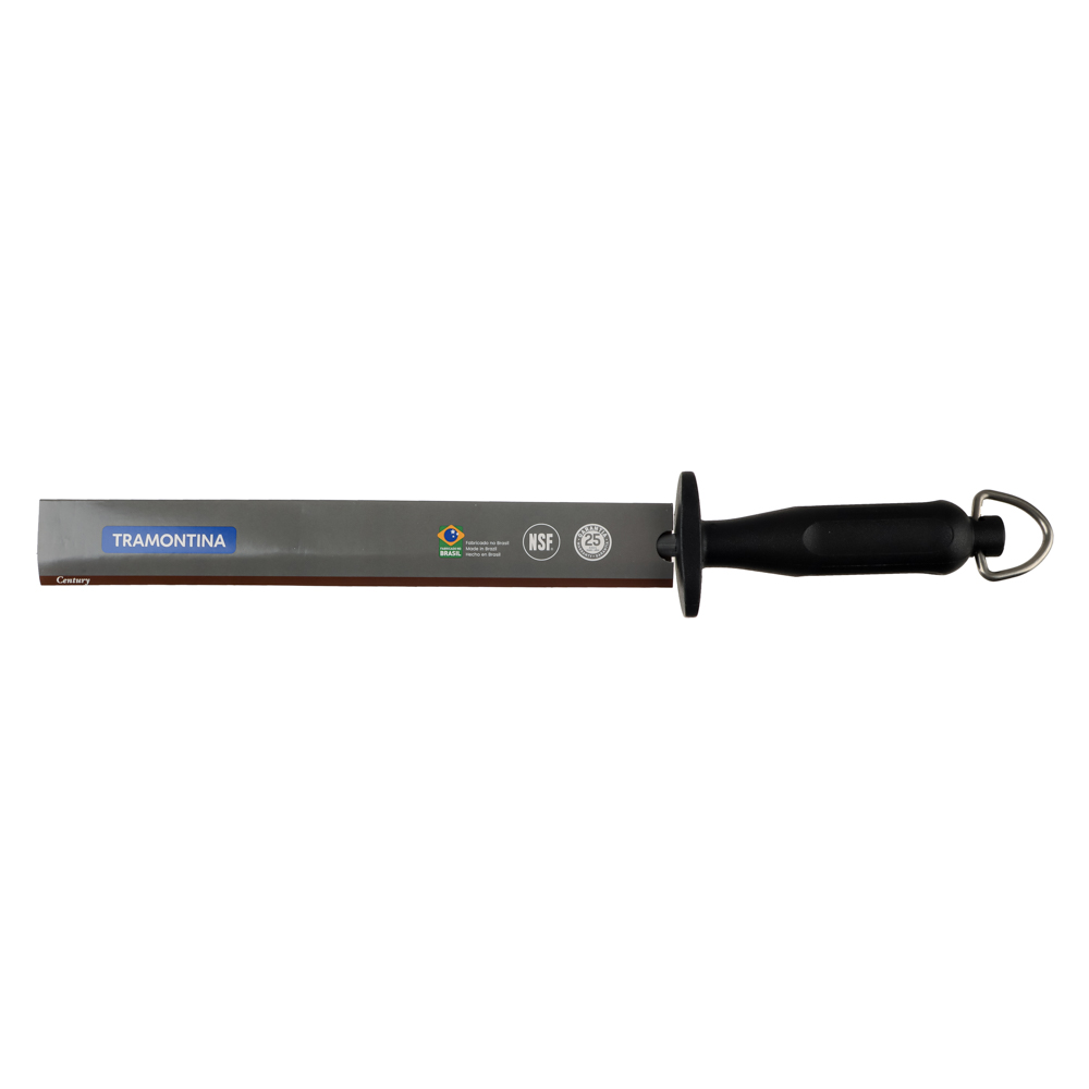 Мусат Tramontina Century предназначен для правки стальных лезвий. Главная задача — выпрямить режущую часть ножа. Изначально вы пользуетесь ножом с острой ровной кромкой. Однако в процессе эксплуатации она загибается и режет значительно хуже. Чтобы распрямить эти изгибы используется кухонный инструмент под названием мусат. Клинок проводится по мусату, а кромка выравнивается. Если этого не делать, заломы становятся больше и постепенно заворачиваются. Таким лезвием можно резать только растопленное масло.5 причин купить мусат Tramontina Century:• не предназначен для заточки ножей• делает режущую часть ножей идеально ровной• изготовлен из ванадиевой стали, которая отлично справляется с лезвиями разной толщины• по сравнению с нержавейкой обладает большая прочность, стойкость к истиранию, ударам• рукоятка оснащена кольцом для хранения в подвешенном виде.