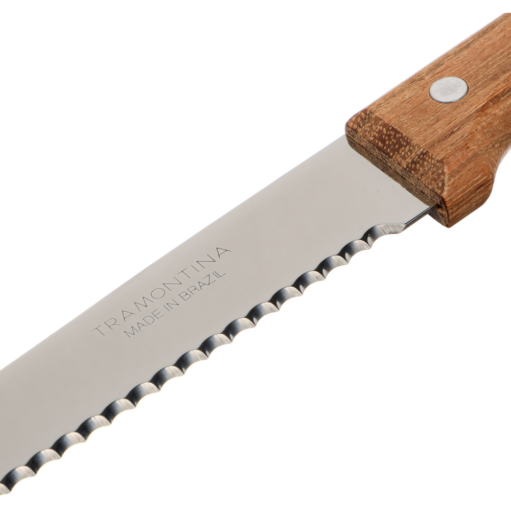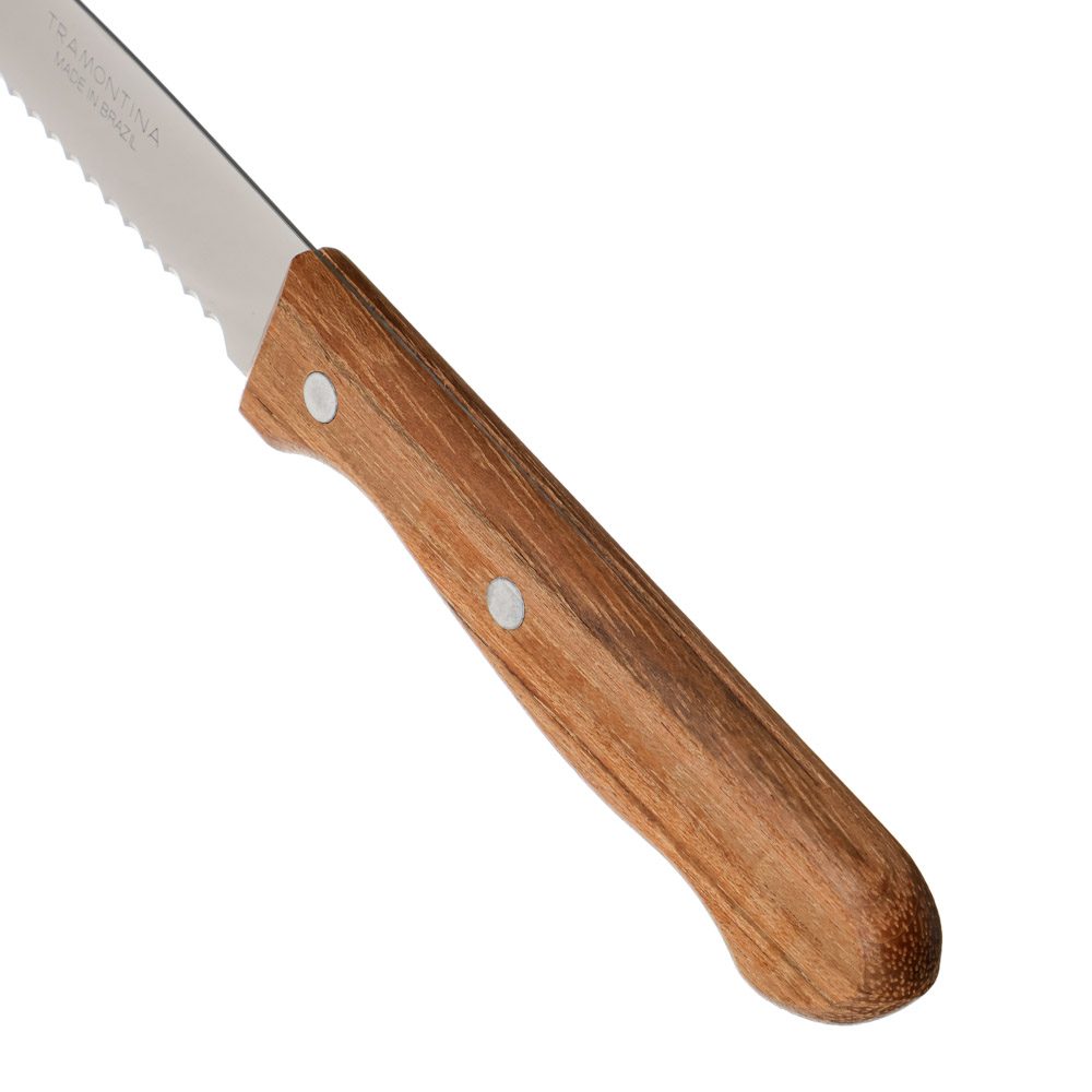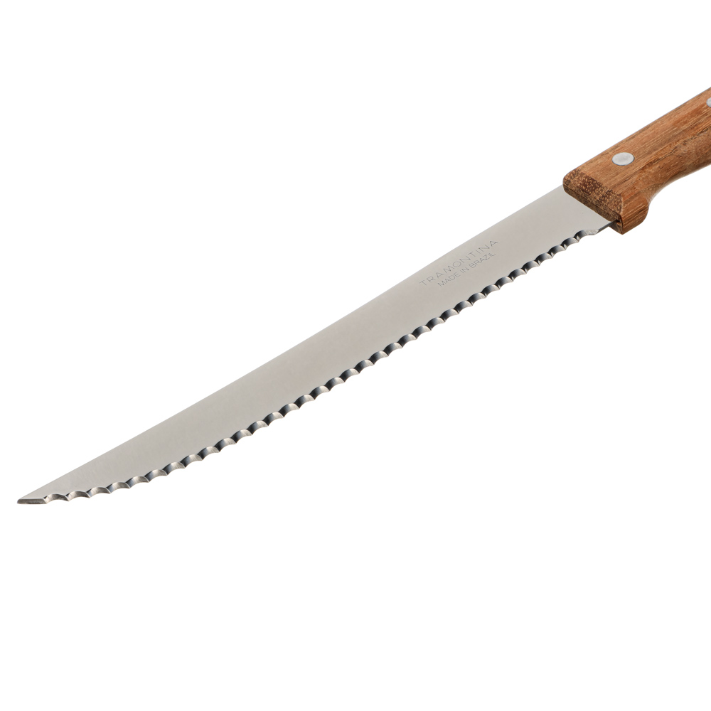 Отличный нож Tramontina Dynamic с крупной пилообразной режущей кромкой. Лёгкий и удобный в руке. Для ручки использована натуральная древесина, которая является очень прочной и удобной в использовании.