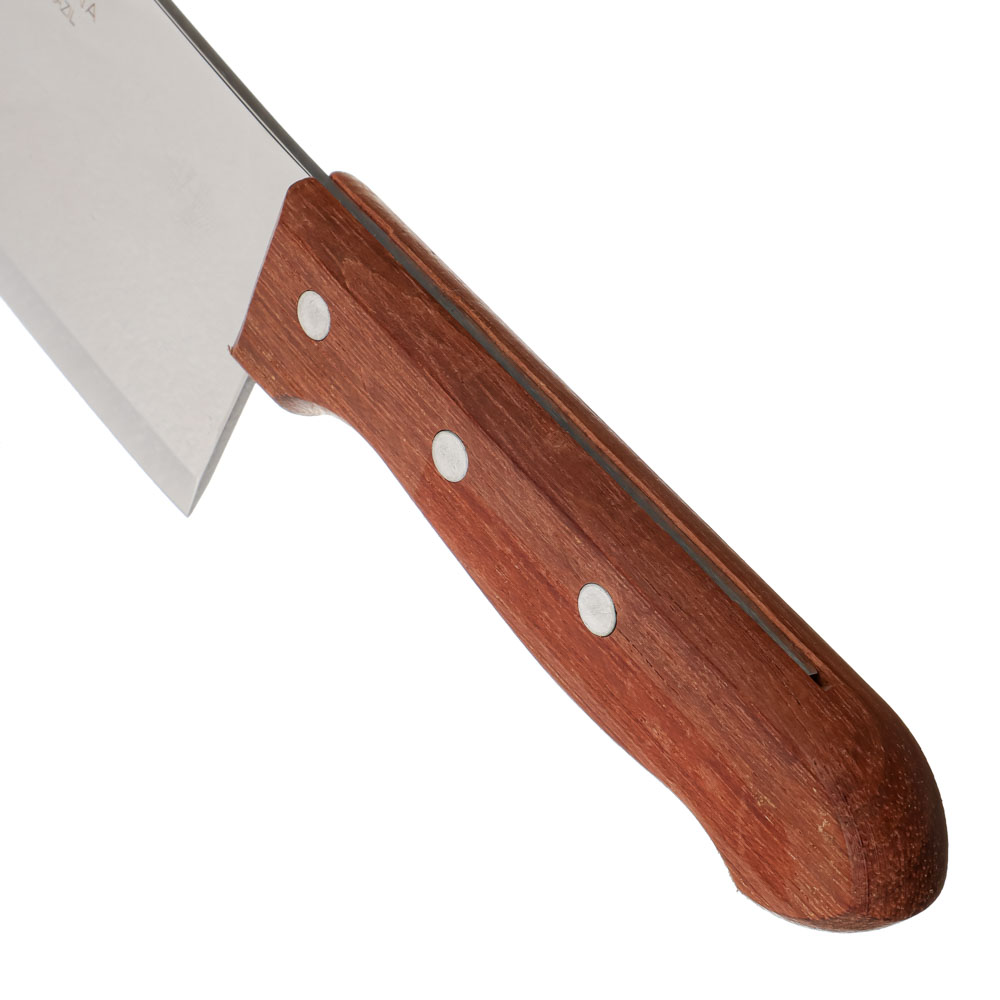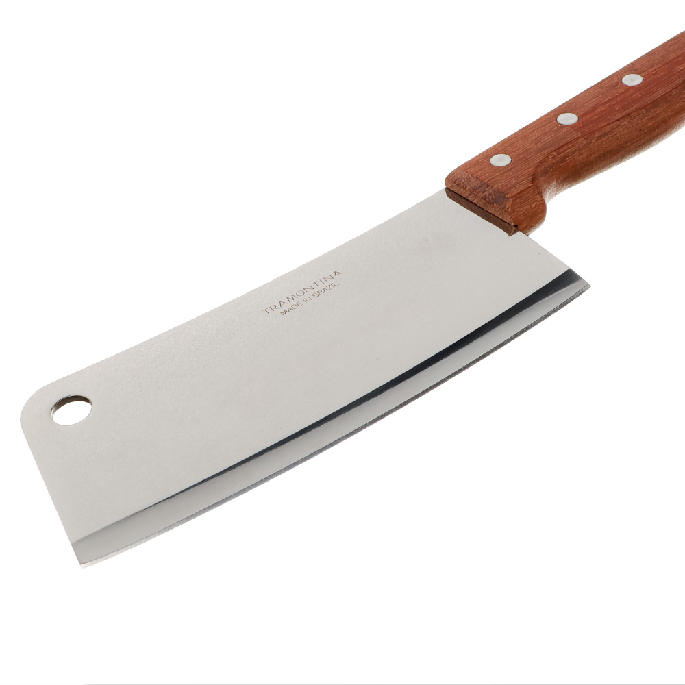 Топор кухонный Tramontina Dynamic 22328/007 – это профессиональный инструмент для поваров и любителей активного отдыха, сочетающий в себе мощность и точность. Изготовленный из нержавеющей стали AISI 420, топор обладает идеально заточенным лезвием длиной 16,7 см, которое легко справляется с рубкой мяса, разделкой птицы и даже спиливанием небольших веток. Благодаря продуманному балансу и весу, он обеспечивает точные удары без лишних усилий, а эргономичная рукоять из дерева гарантирует надежный хват даже при интенсивной работе. Топор подойдет не только для кухни – он станет верным спутником на пикнике, рыбалке или охоте.