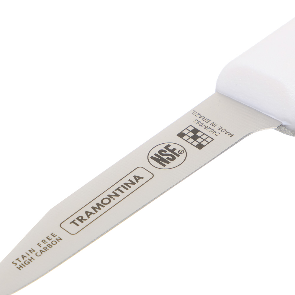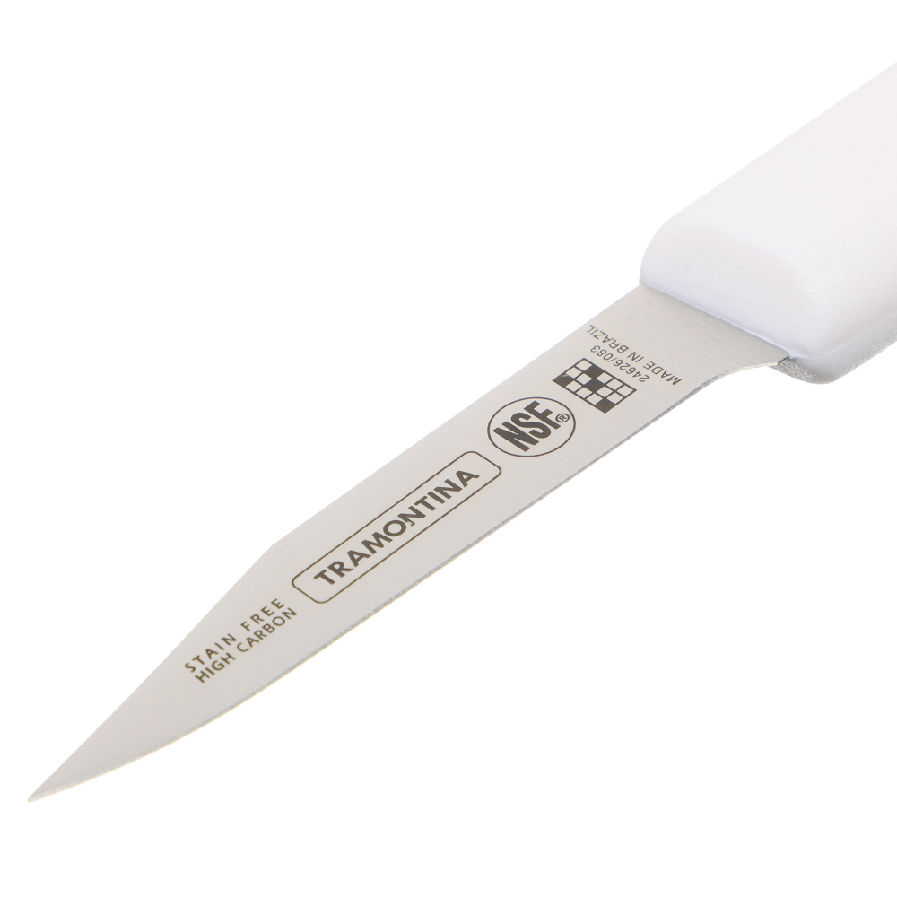 Овощной нож Tramontina Professional Master – это небольшой нож с классической формой лезвия, которая идеально подойдёт для резки небольших продуктов. Полипропиленовая рукоять ножей серии Professional Master удобно лежит в руке и не скользит. А благодаря антибактериальной защите поверхность не подвержена образованию неприятного запаха и пятен, вызванных бактериями, плесневым грибком и налетом.