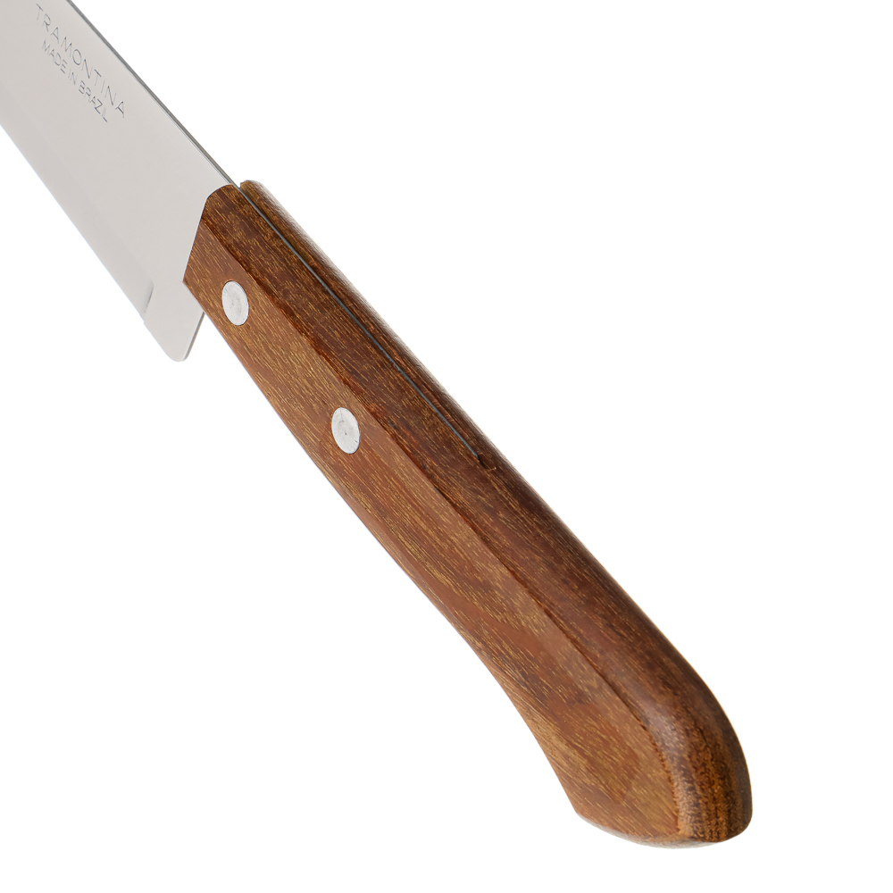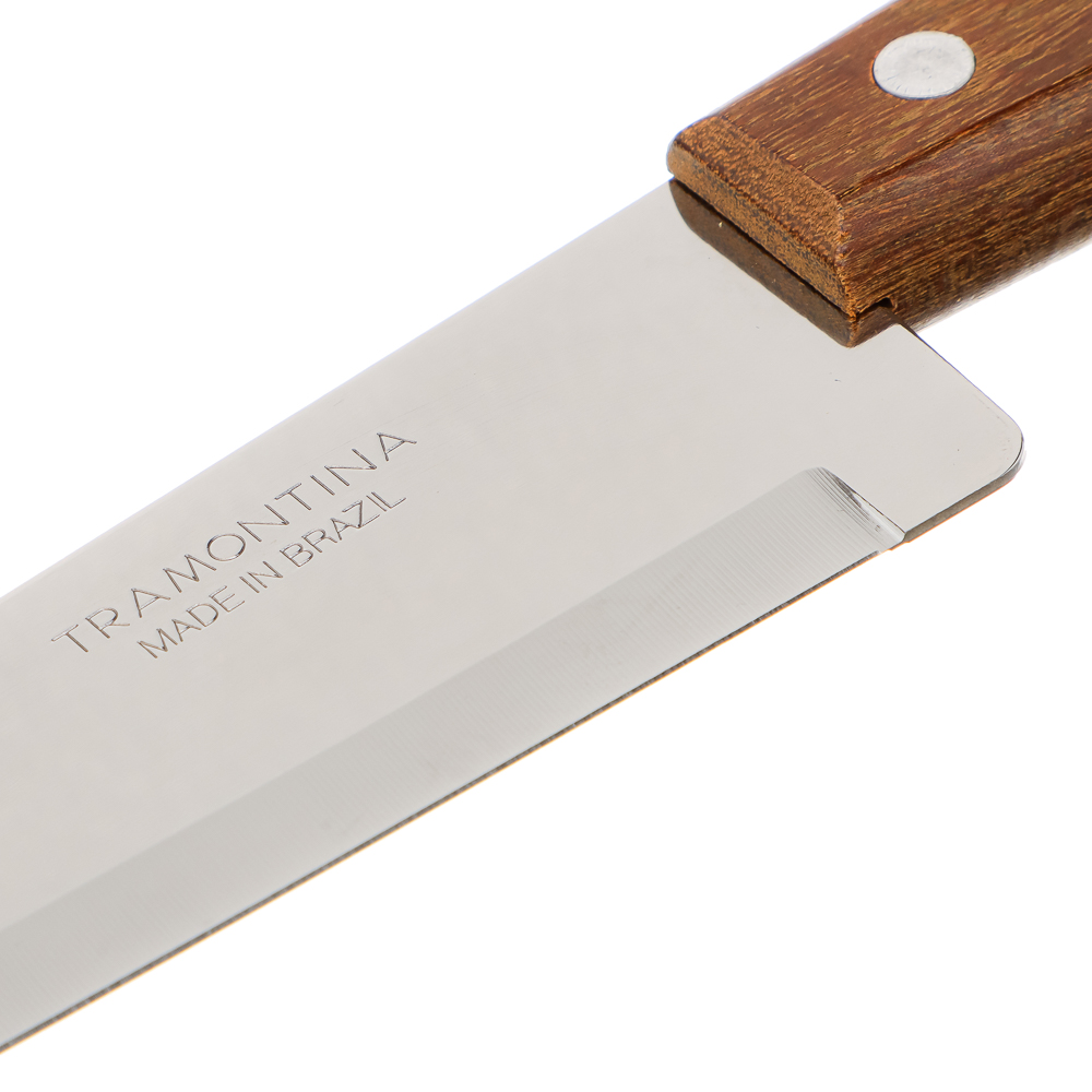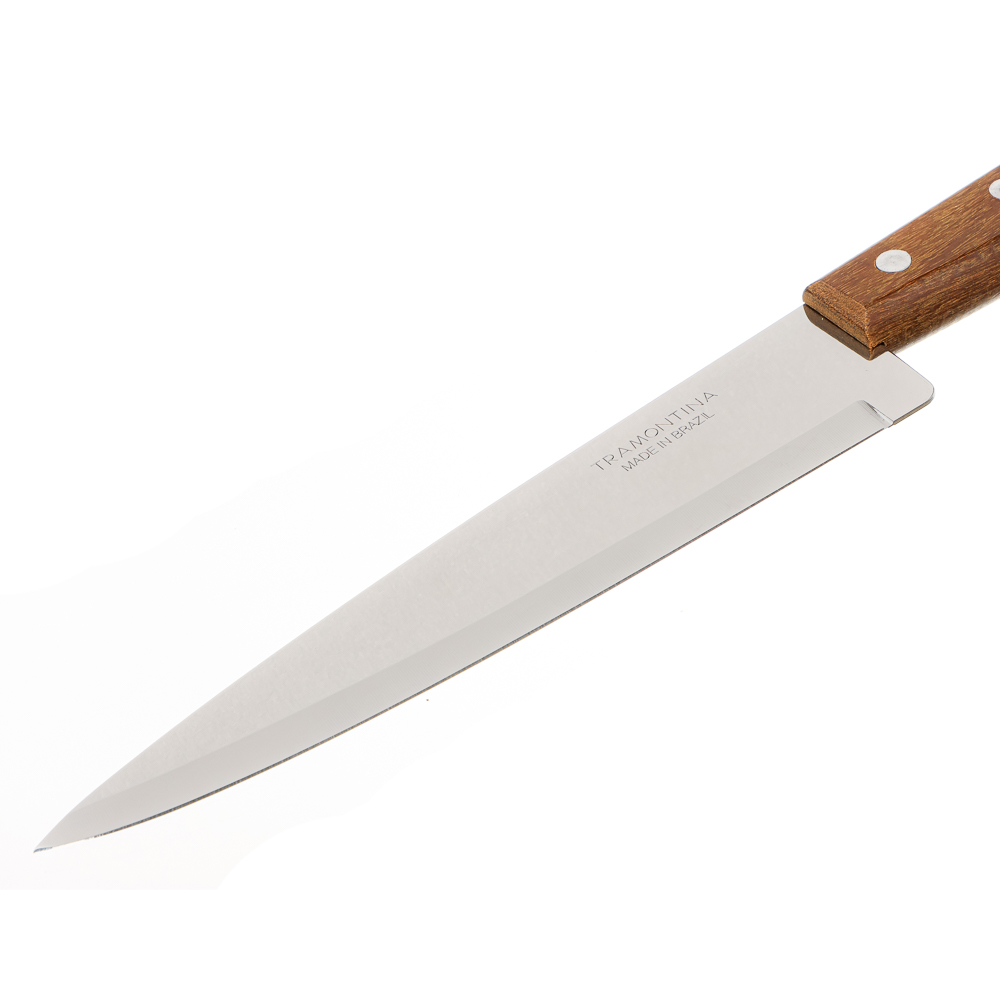 Классический нож для кухни Tramontina Universal, лезвие выполнено из качественной нержавеющей стали. Ручка сделана из натурального дерева, благодаря чему нож лежит в руке удобно и не скользит.