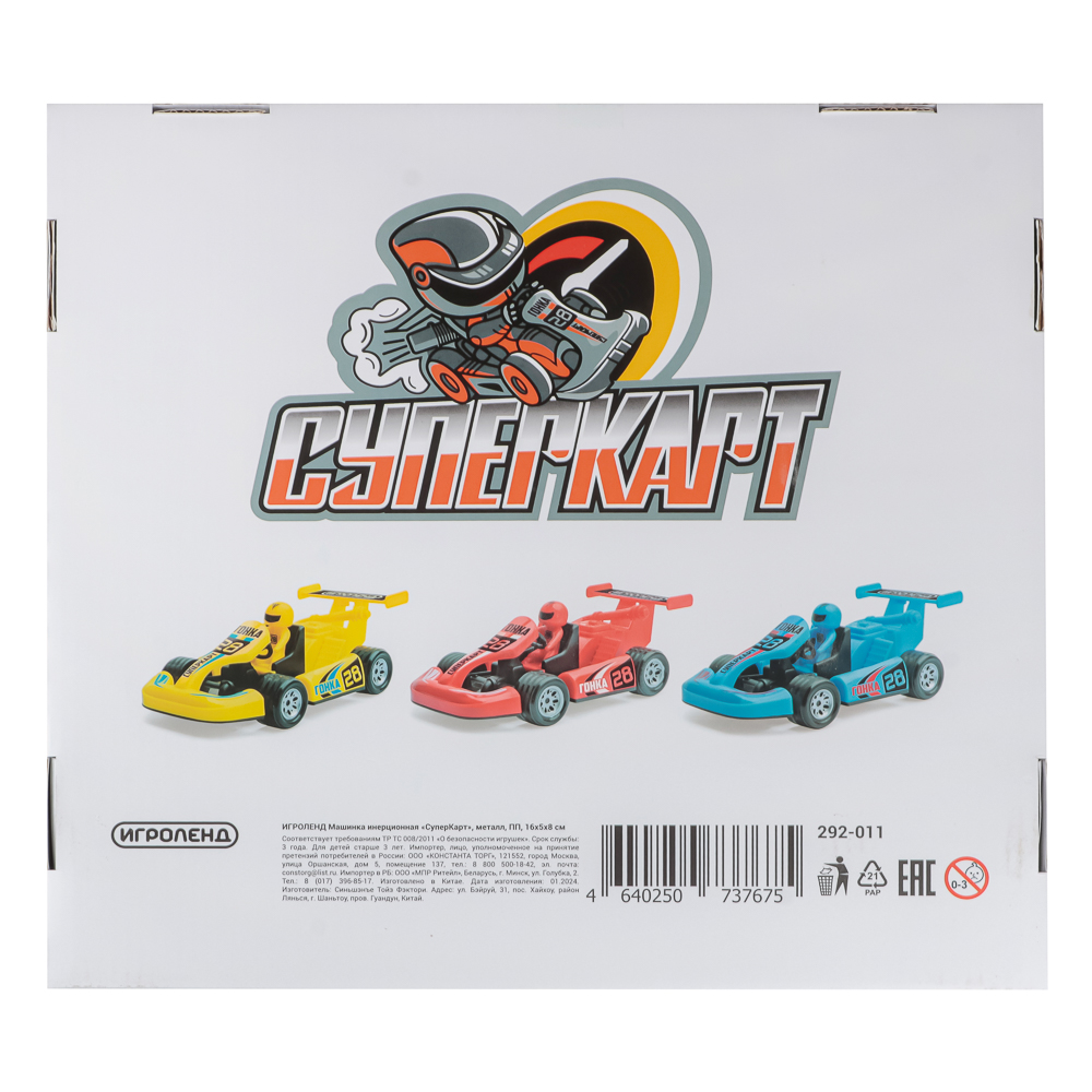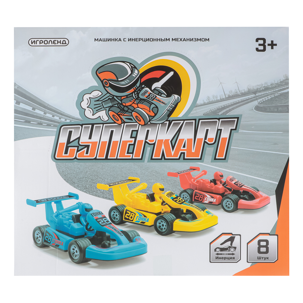 Инерционная машинка от ИГРОЛЕНД "Супер Карт" размером 16х5х8 см имеет стильный, яркий, выразительный дизайн, поэтому станет приятным сюрпризом для мальчика. Машинка прекрасно двигается по гладким поверхностям, а инерционный механизм позволяет запускать ее на достаточно длинную дистанцию. Игрушка выполнена из качественных материалов – металла и полипропилена, крепкая и устойчивая к механическим воздействиям. Подарите ребенку несколько машинок и устройте головокружительные гонки. Дизайн в ассортименте.