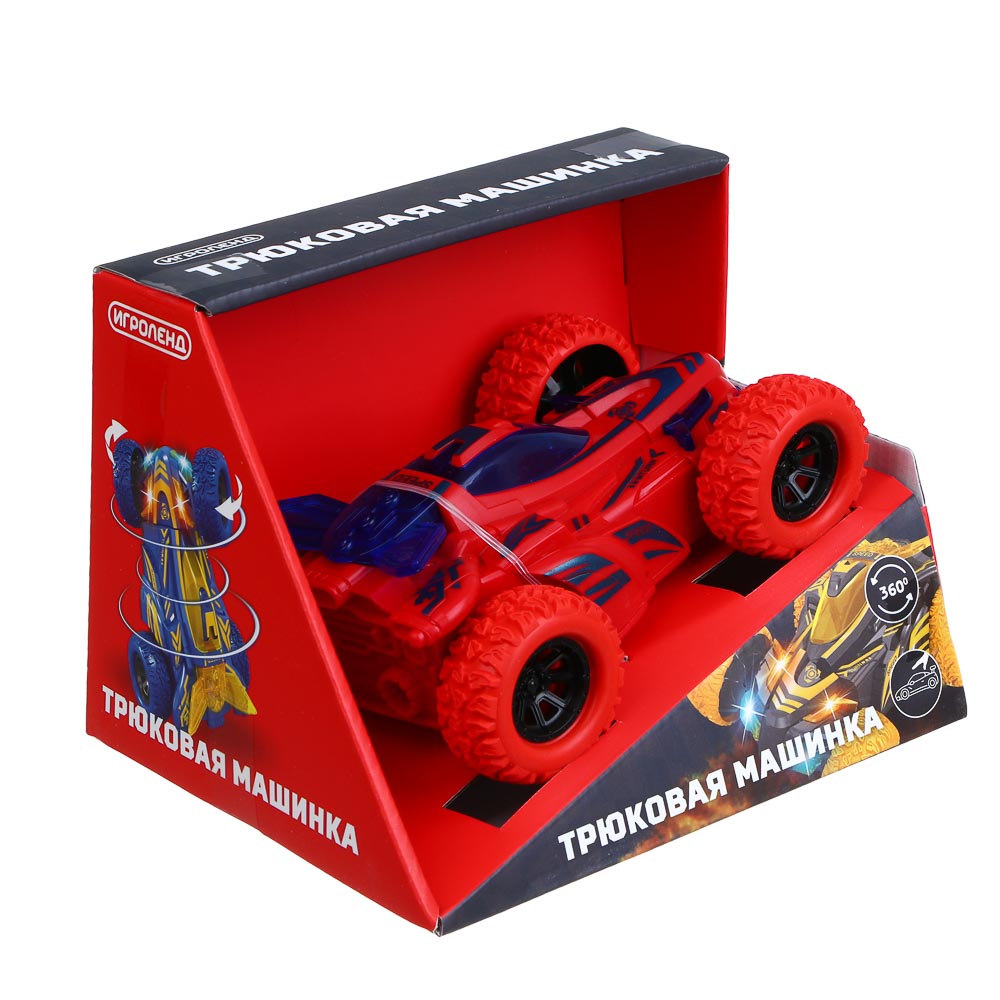 Трюковая машинка от ИГРОЛЕНД со световыми эффектами выполняет головокружительные трюки с разворотом на 360 градусов. Имеет яркий современный дизайн с качественными большими колесами с высокой степенью проходимости. Корпус из пластика и полипропилена устойчив к механическим воздействиям. Зрелищные трюки с подсветкой завладеют вниманием ребенка и подарят новые яркие впечатления. Элемент питания для работы подсветки – 3 батарейки LR41. 4 дизайна в ассортименте.
