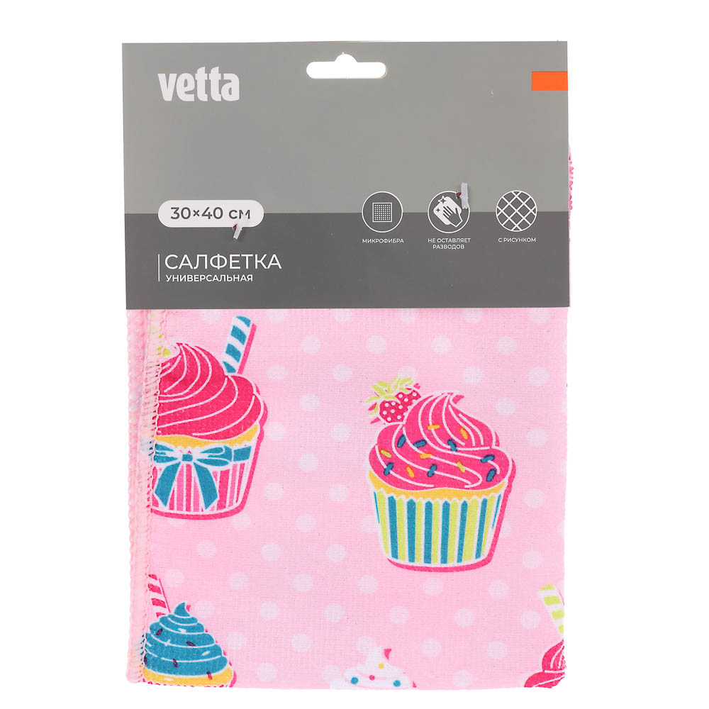 Универсальная салфетка Vetta из микрофибры — это настоящая фея чистоты, легко справляющаяся с пылью, пятнами и различными загрязнениями. Понадобится всего несколько минут, чтобы стеклянный стол или большой экран LED телевизора засверкал идеальной чистотой. Купить универсальную салфетку Vetta можно для очистки кухонных рабочих поверхностей, деревянной мебели, посуды, сантехники и напольных покрытий. Салфетка представлена в 4 дизайнах.
