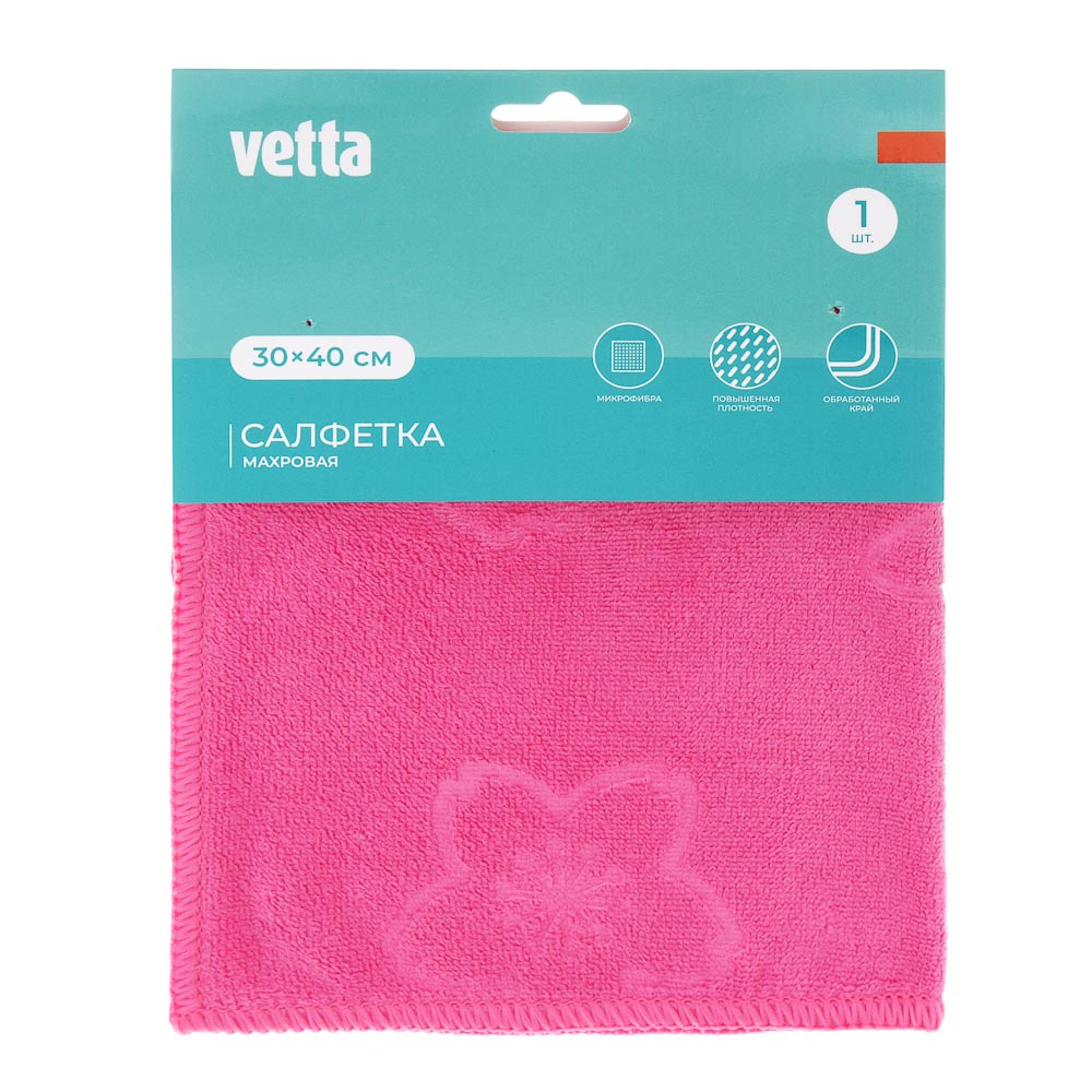 VETTA Салфетка из микрофибры универсальная махровая с узором, 30х40см, 300 г/кв.м.
