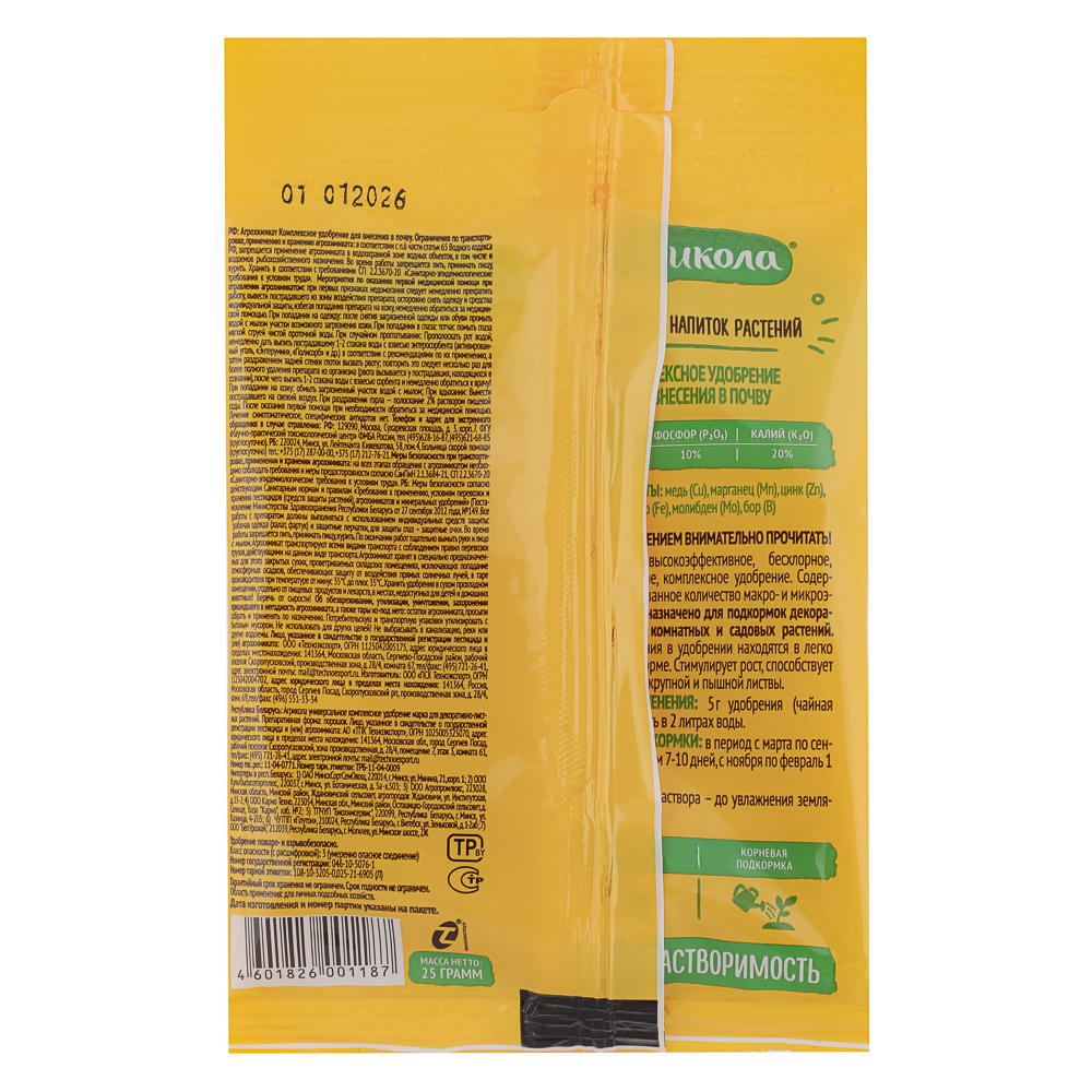 Удобрение Агрикола для декоративнолистных растений в упаковке 25 г специально разработано для поддержания здоровья и красоты домашних растений с декоративной листвой. Сбалансированный состав питательных веществ способствует активному росту, укреплению корневой системы и насыщению зелёного окраса листьев. Регулярное применение удобрения предотвращает пожелтение и опадение листьев, повышает устойчивость растений к стрессам и неблагоприятным условиям. Продукт легко дозировать и использовать, что делает его подходящим как для опытных цветоводов, так и для новичков.