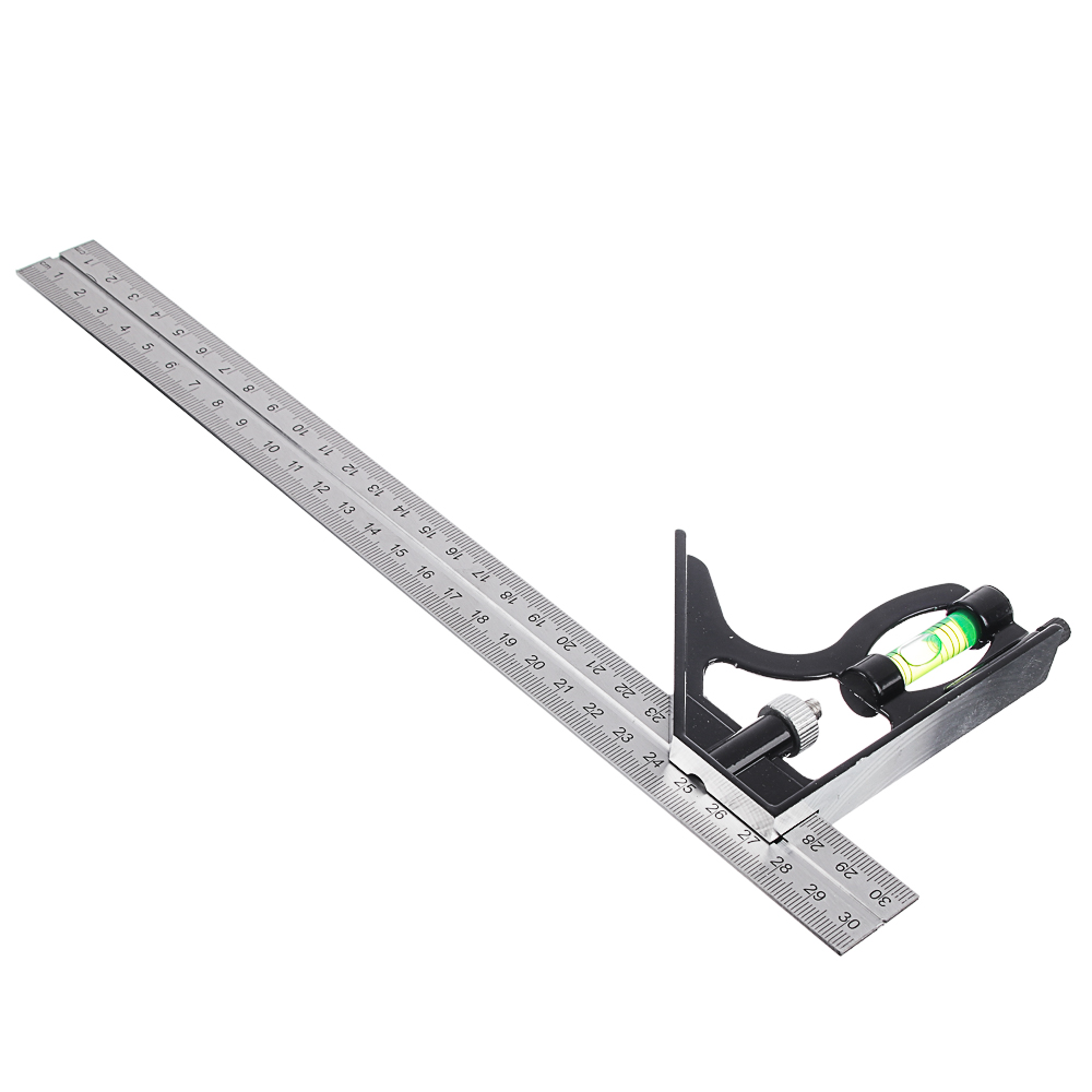 Угольник металлический комбинированный используется для разметки и проверки прямых углов, а встроенный уровень позволяет контролировать горизонтальность и вертикальность поверхностей. Прочный металлический корпус обеспечивает надёжность и долговечность инструмента, а длина 300 мм делает его удобным для средних по размеру заготовок.