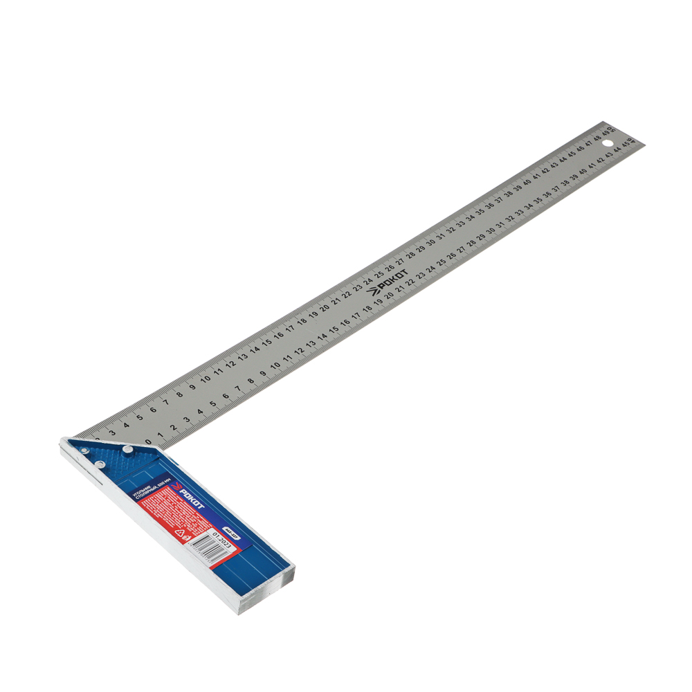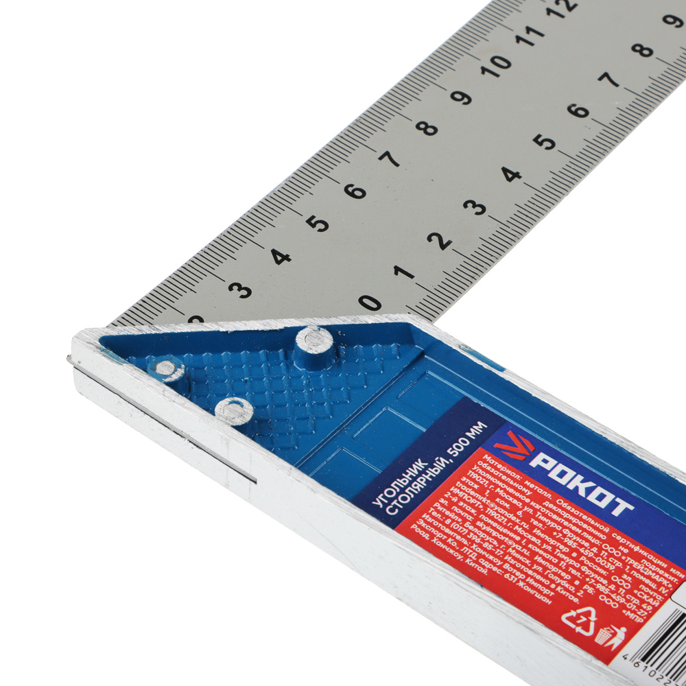 Угольник РОКОТ 500 мм предназначен для профессионального использования. С его помощью выполняют контроль поверхностей и линейные измерения. Угольник применяется при столярных и плотницких работах для измерения отклонения от перпендикулярности расположения деталей или каких-либо поверхностей. Имеет две рабочих стороны, образующие наружный и внутренний угол. Благодаря толстому основанию, его можно без дополнительных приспособлений устанавливать на рабочих поверхностях. Конструктивно угольники представляют собой, две части, вырубленные из листовой инструментальной или нержавеющей стали, с последующей термической и механической обработкой. Стороны угольников имеют по две доведенные плоские поверхности, образующие внутренний и наружный рабочие углы. для измерения отклонения от перпендикулярности расположения деталей или каких-либо поверхностей.