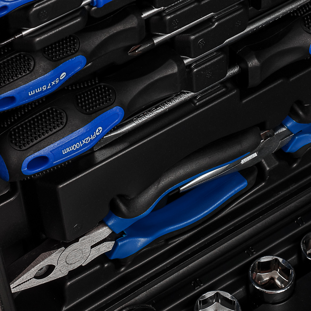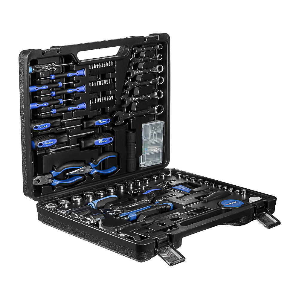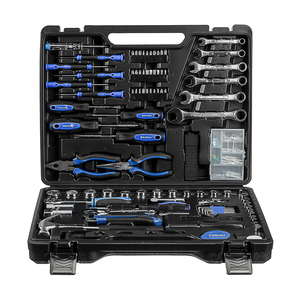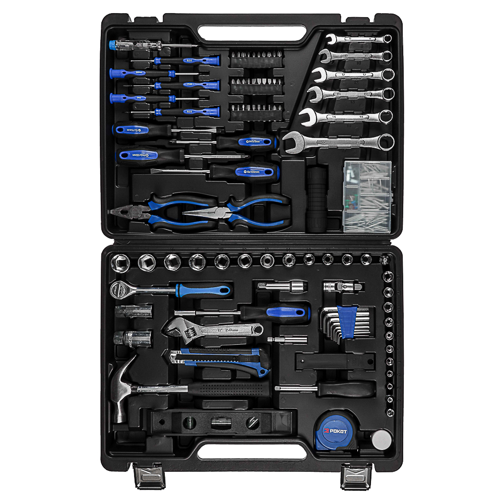 Набор инструмента РОКОТ из 208 предметов – это расширенный комплект инструментов для сервиса, ремонта, обслуживания и проведения монтажных работ. Незаменим для дома, гаража и автомастерской. В наборе содержатся: отвертки с разными типами шлицев, индикаторная и трещоточная отвертки, фонарик, пассатижи, биты, ключи в том числе шестигранные, муфта, адаптер, торцевые и свечные головки, удлинитель, универсальный шарнир, отверточная и трещоточная рукоятки, разводной ключ, нож строительный с набором лезвий, а также молоток, уровень, рулетка и комплект крепежа для дерева 104 шт. Инструменты из углеродистой стали рассчитаны на долгие годы эксплуатации, устойчивы к истиранию, имеют оптимальную твердость, не ломаются. Пластиковый кейс обеспечит компактное хранение и удобство транспортировки.