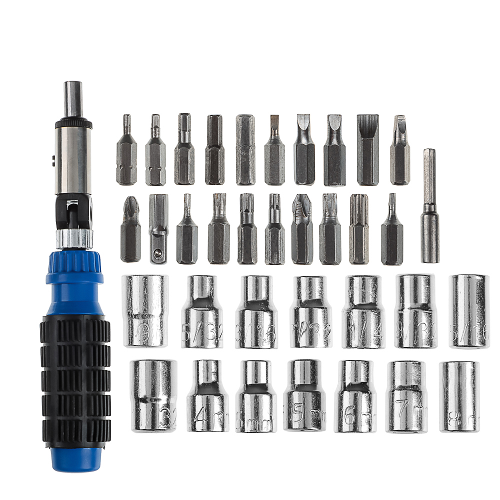 Реверсивно-рычажная отвертка с магнитным держателем для бит