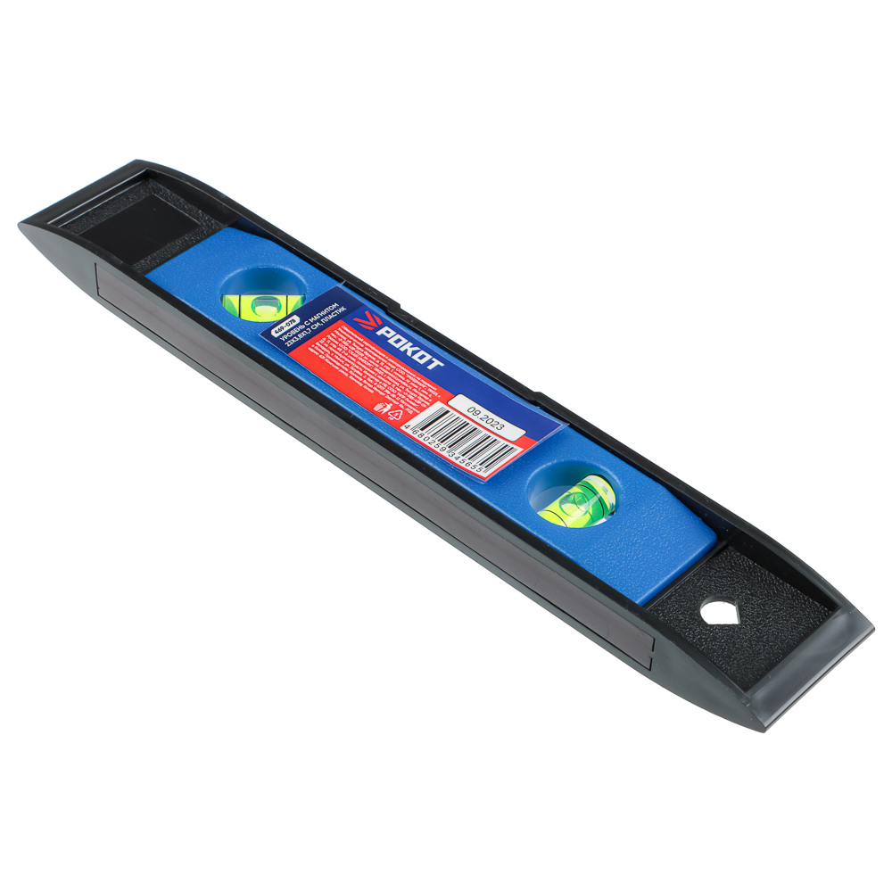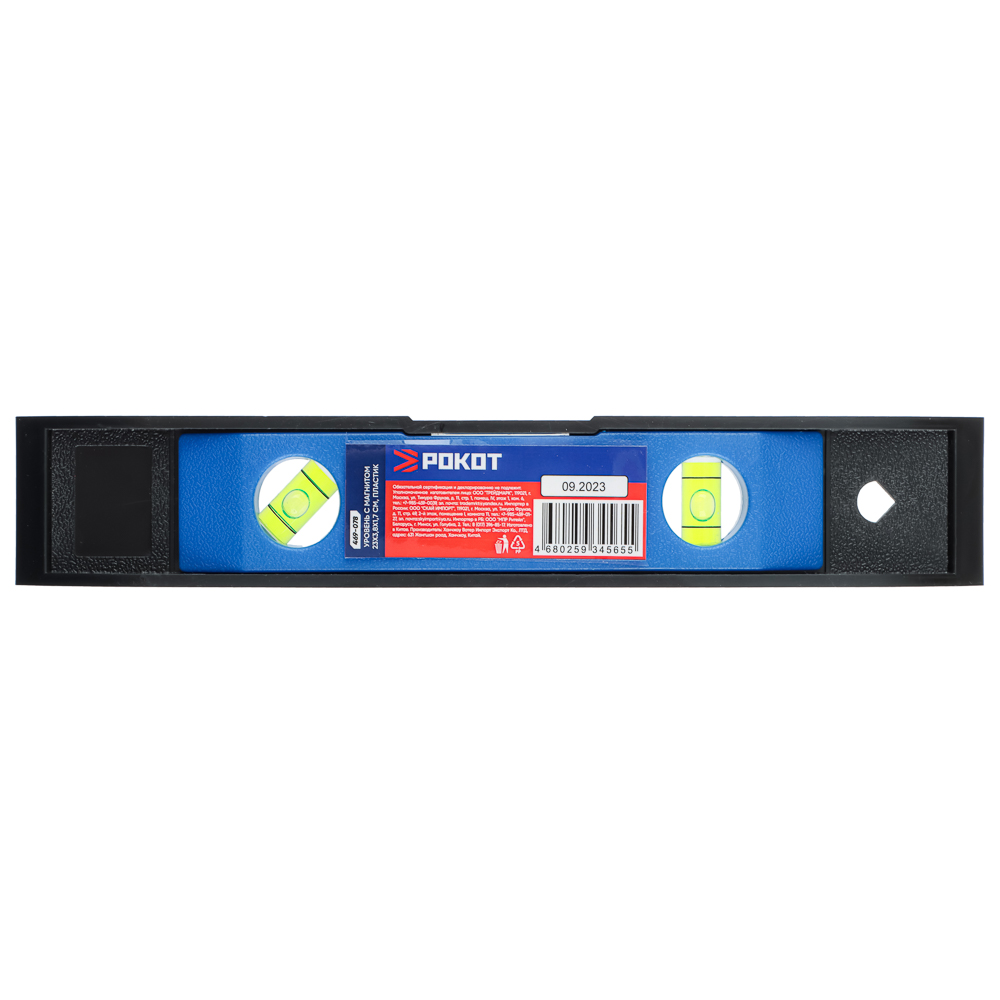 Уровень с магнитом РОКОТ 23х3,8х1,7 см с тремя глазками – это удобный компактный инструмент для контроля соответствия поверхностей вертикальной и горизонтальной плоскостям, а также для измерения угла наклона отклонения. Незаменим для строительных и отделочных работ, а также в быту при установке бытовой техники: холодильника, стиральной машины. Оснащен мощным магнитом для крепления к металлическим конструкциям. Имеет прочный пластиковый корпус, устойчивый к механическим повреждениям. 2 цвета в ассортименте.