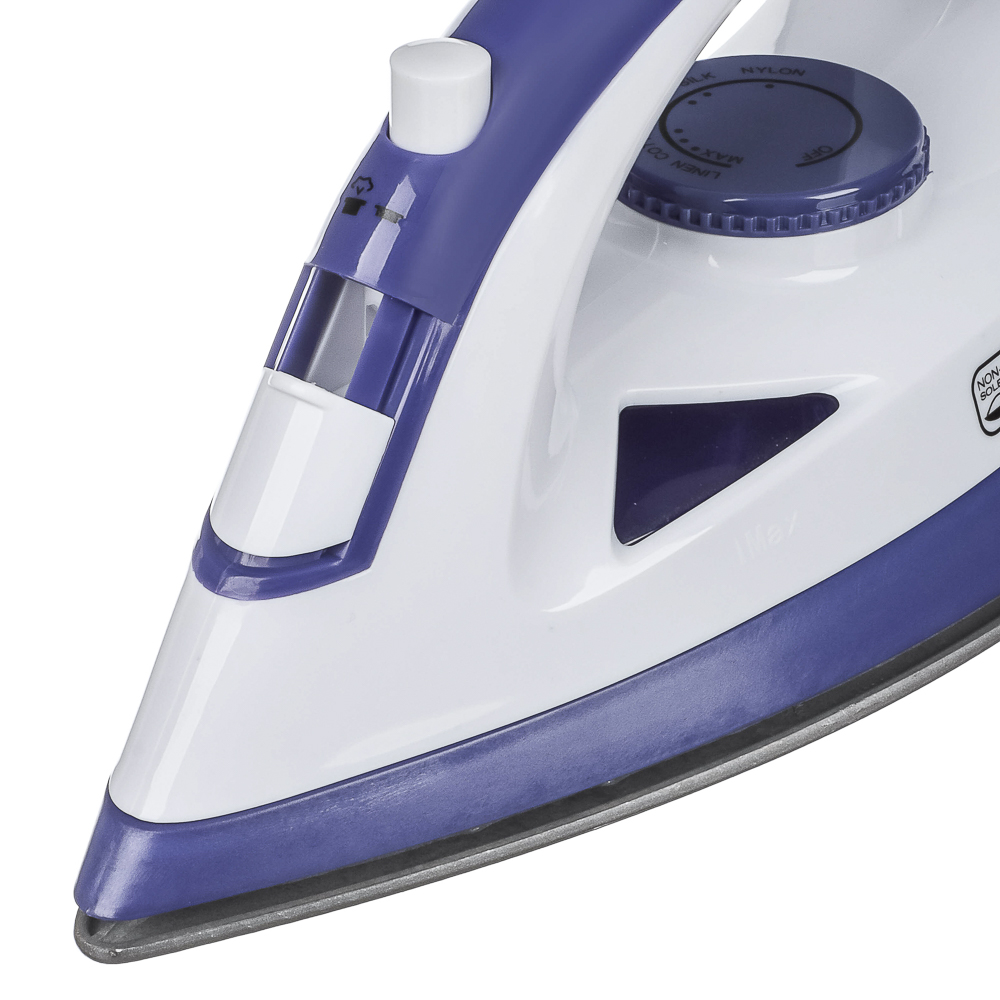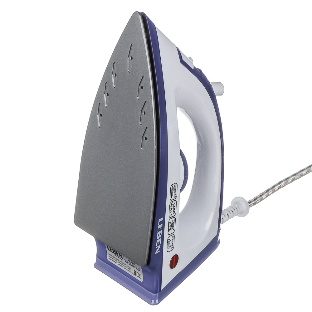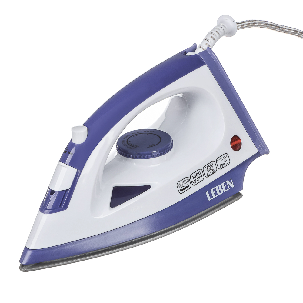 LEBEN Утюг 1300 Вт с отпаривателем — элегантный бытовой прибор в бело-синем корпусе, созданный для эффективного ухода за одеждой. Оснащен тефлоновой подошвой для бережного глажения и 1,35-метровым шнуром для комфортного использования. Работая от сети 220В/50Гц, утюг обеспечивает качественное разглаживание тканей с функцией отпаривания. Компактный дизайн сочетает практичность и современную эстетику.