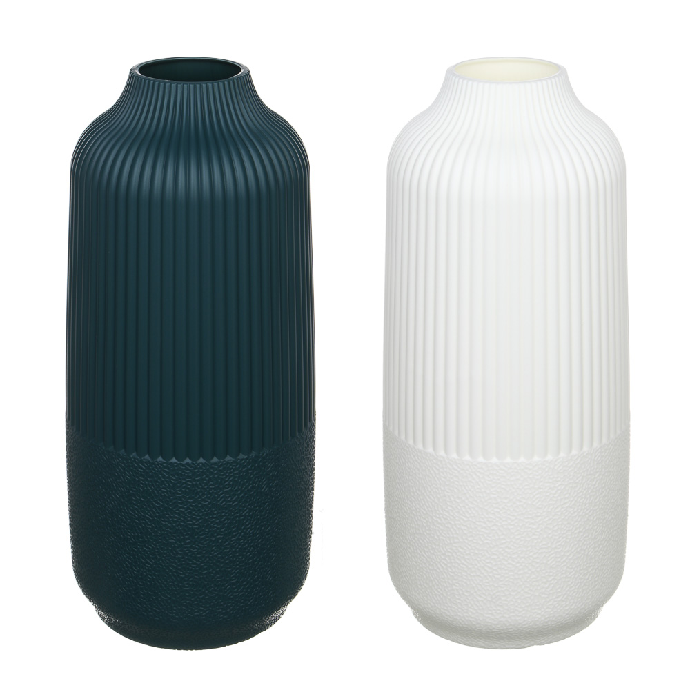 Стильная ваза 11х30,5х6,5 см вытянутой формы станет изысканным акцентом в интерьере. Верхняя часть украшена вертикальными рельефными линиями, создающими современный минималистичный дизайн, а нижняя — с фактурным покрытием, имитирующим камень. Материал — прочный пластик, легкий и практичный в уходе. Идеально подойдет для сухоцветов, декоративных композиций или как самостоятельный элемент декора. Компактные размеры позволяют разместить вазу на полке, подоконнике или журнальном столике. Элегантное решение для дома, офиса или подарка.