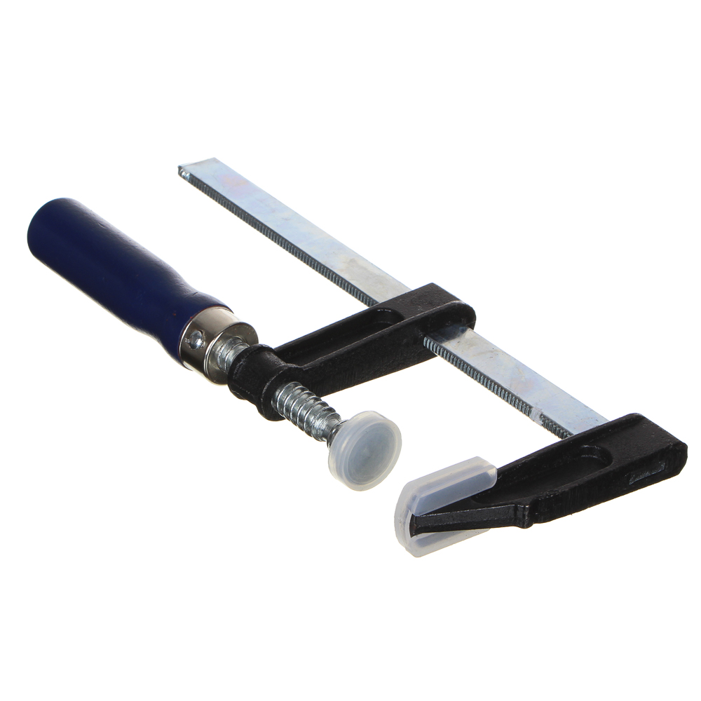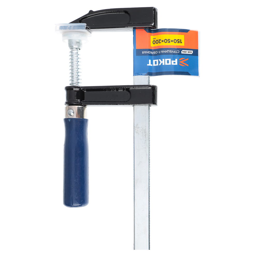 Струбцина РОКОТ F-образная 150x50x200 обеспечивает сжатие между собой листового материала. Инструмент оснащен губками, которые увеличивают площадь, по которой распределяется давление. Это исключает повреждение деталей. Рукоятка обеспечивает надежное затягивание и упрощает работу со струбциной.