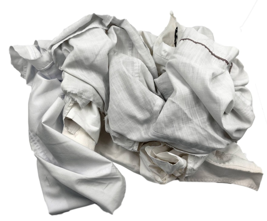 Продукт изготавливается из одежды second-hand белого цвета. В состав брикета входят: мужские сорочки, женские блузки, туники, медицинская и поварская спец. одежда (фартуки, халаты), скатерти и салфетки.